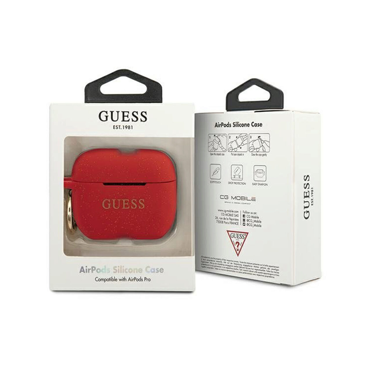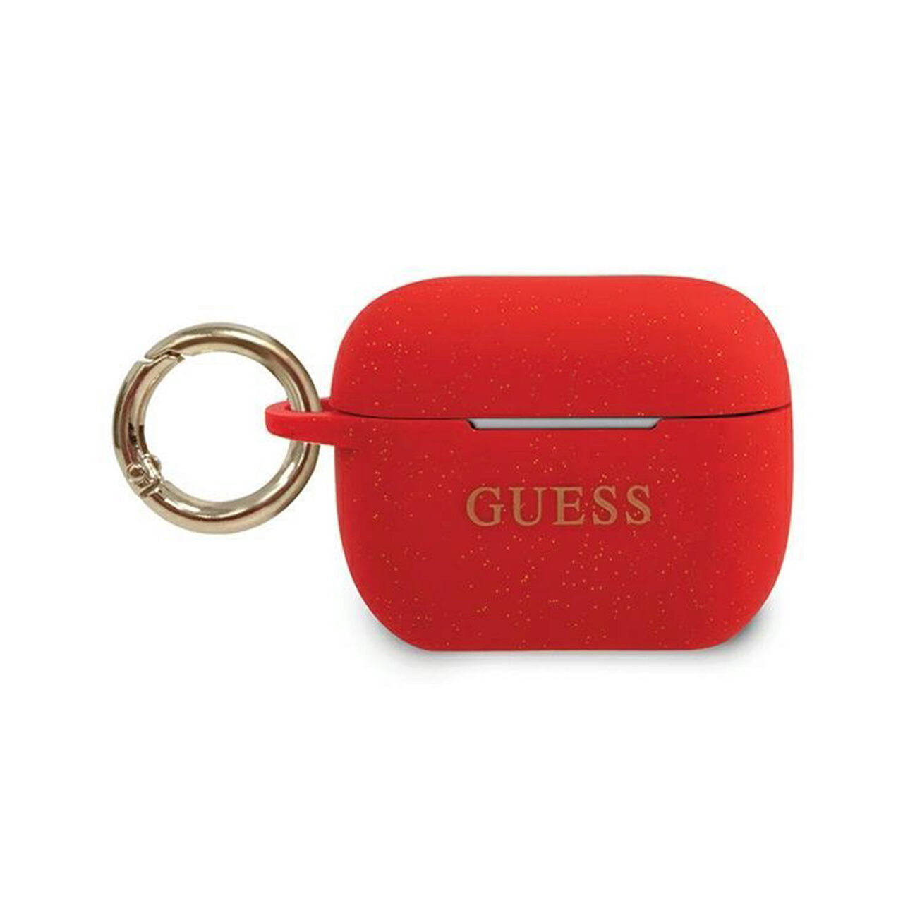 Guess Silicone Glitter Airpods Pro Case Red (with key)