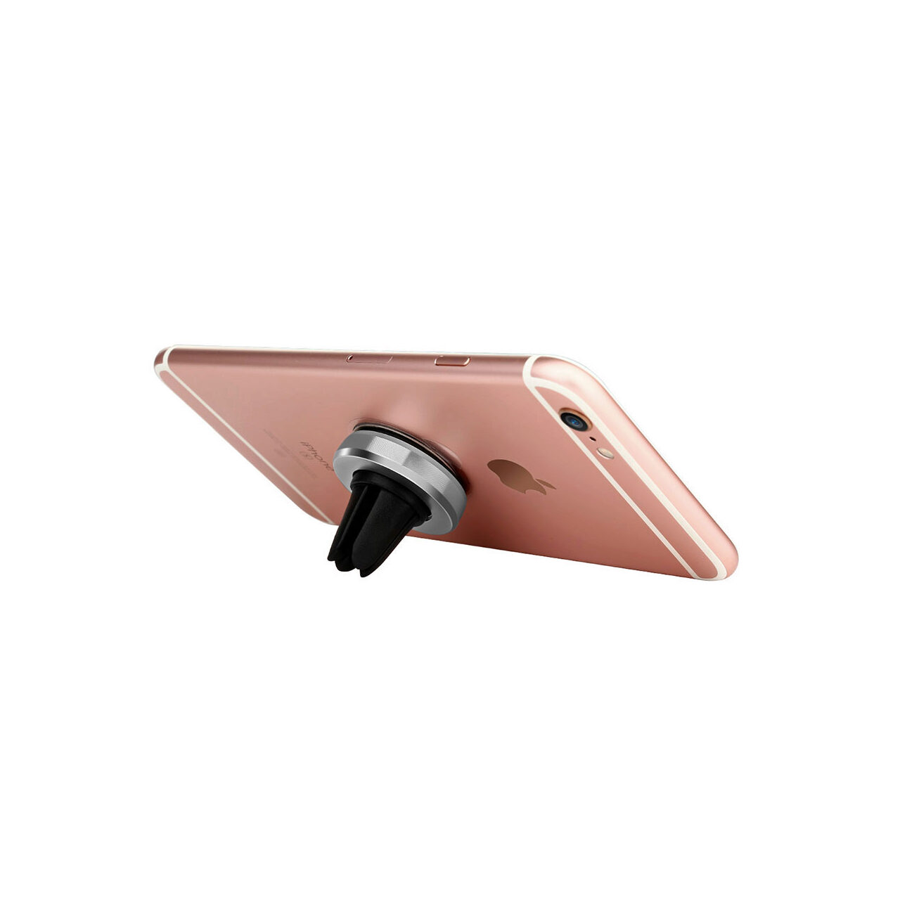 Your device is attached to the support by four circularly arranged, very strong magnets covered with a rubber material to protect the contact surface.