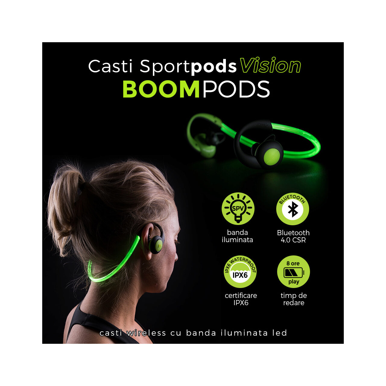 Boompods Casti Sportpods Vision Green (in-ear, bluetooth, illuminating head band, sweat resistant)