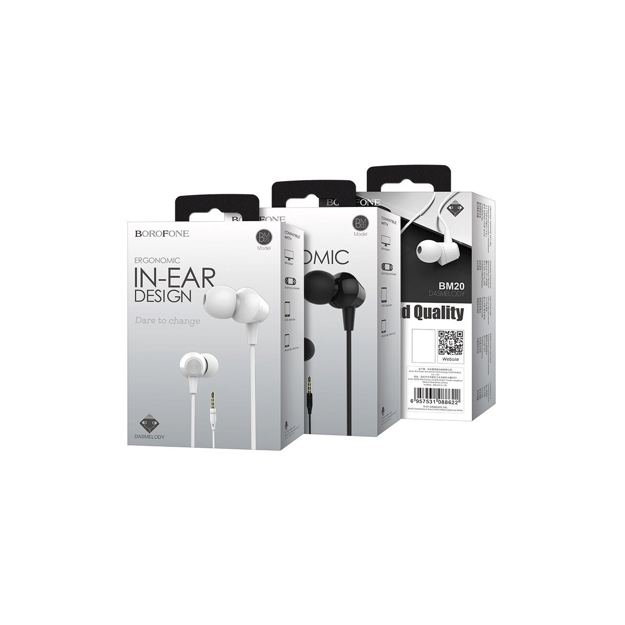 Borofone BM20 DasMelody In-Ear Headphones with microphone, Jack 3.5mm, White