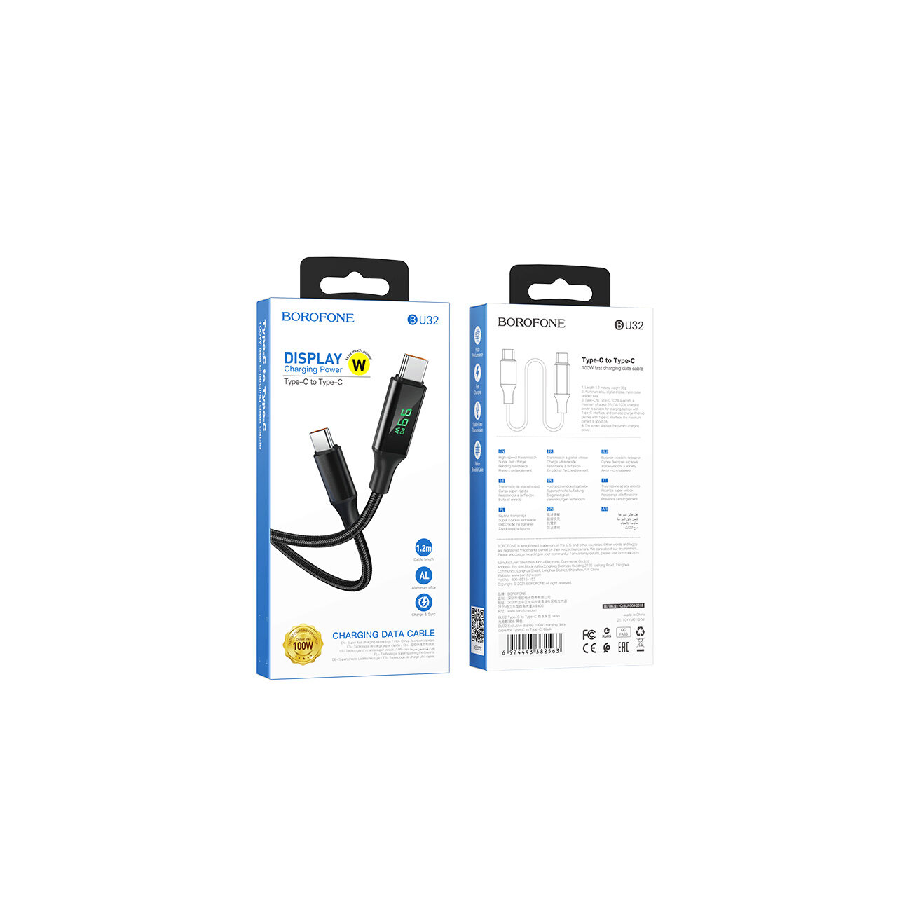 Borofone's BU32 Exclusive Type-C to Type-Care cable has a special plug design that increases the bending resistance of the cable to prevent it from breaking and can be used for both charging and data synchronization.