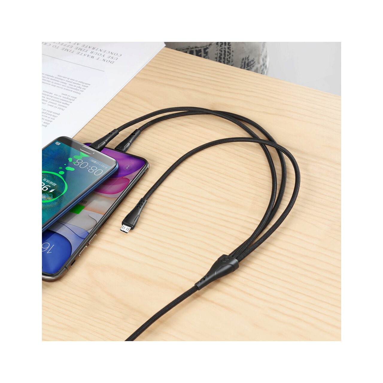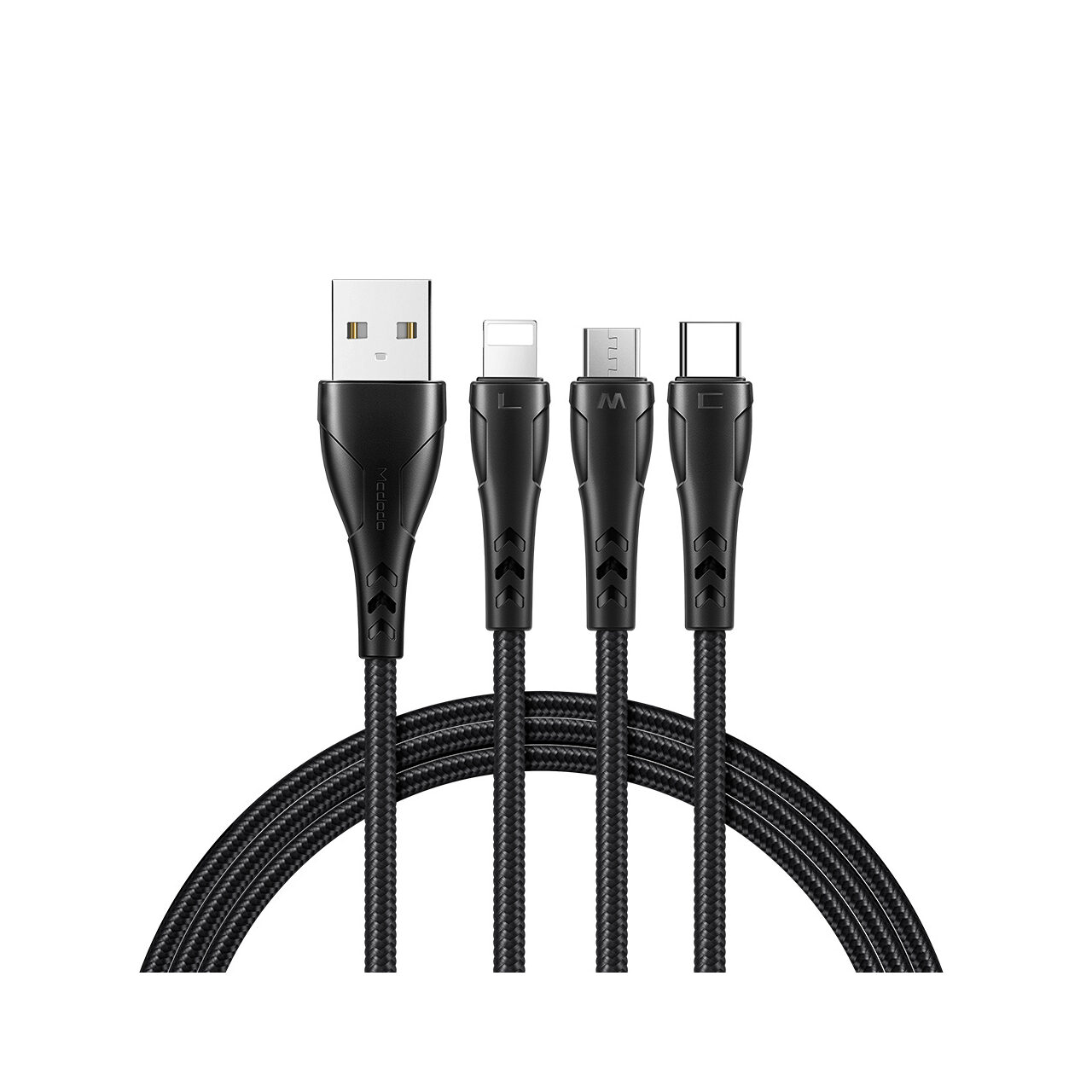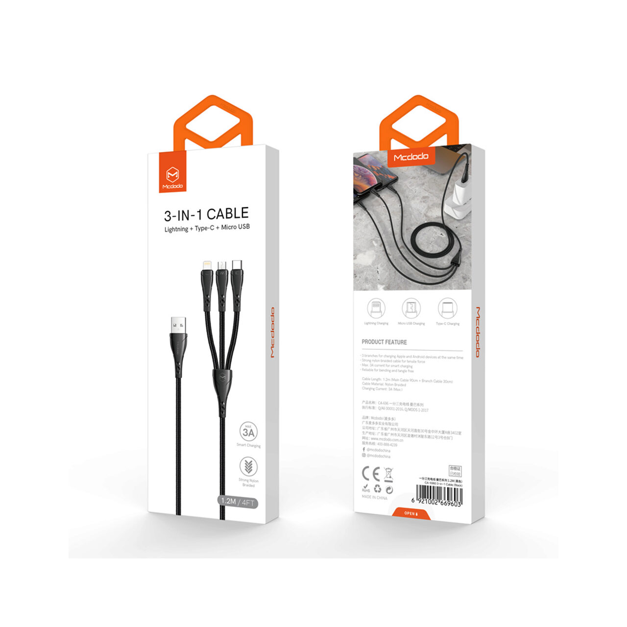 Mcdodo Cable Mamba Series 3 in 1 Lightning & MicroUSB & Type-C Black (max 3A, 1.2m)