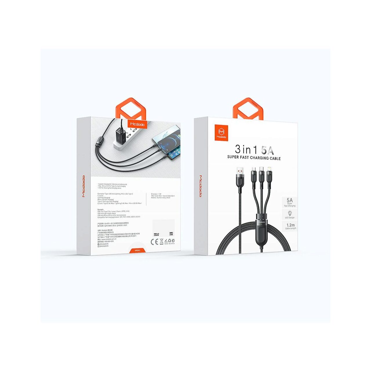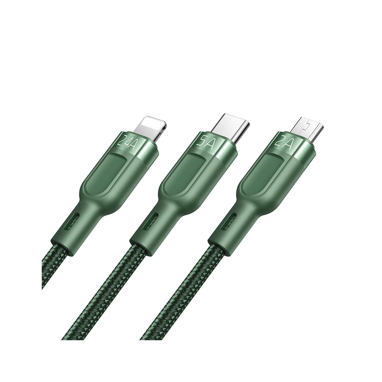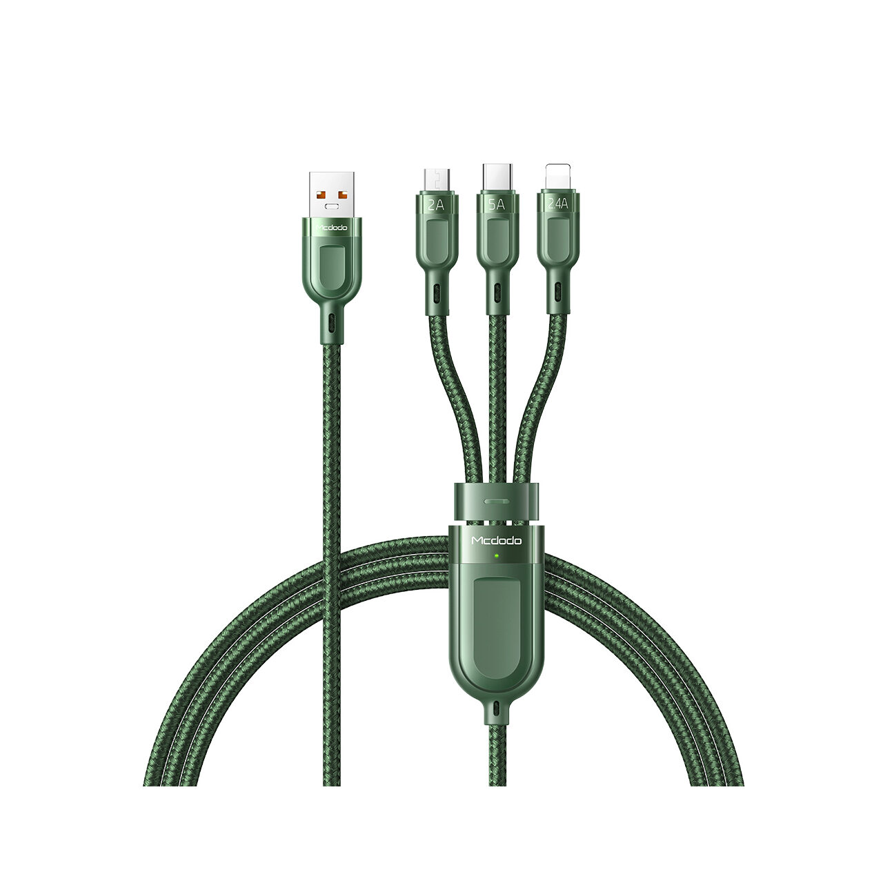 Mcdodo Super Fast Charging Cable 3 in 1 Lightning & MicroUSB & Type-C Green (5A, 1.2m)