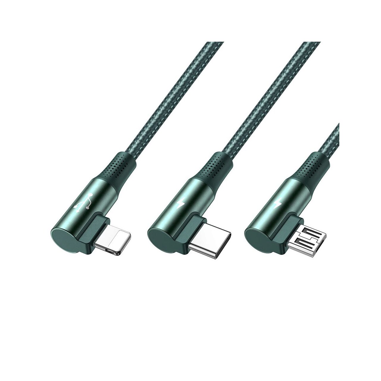 Mcdodo Cable 3 in 1 90 Degree Lightning, MicroUSB and Type-C Green (3A, 1.2m)