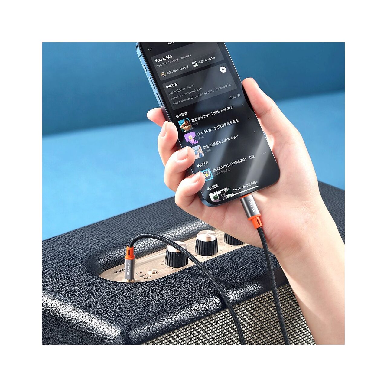 Mcdodo's Castle Series audio Lightning to Jack 3.5mm cable is used for quality sound reproduction. You can connect devices that use a 3.5mm audio standard, such as headphones, speakers.