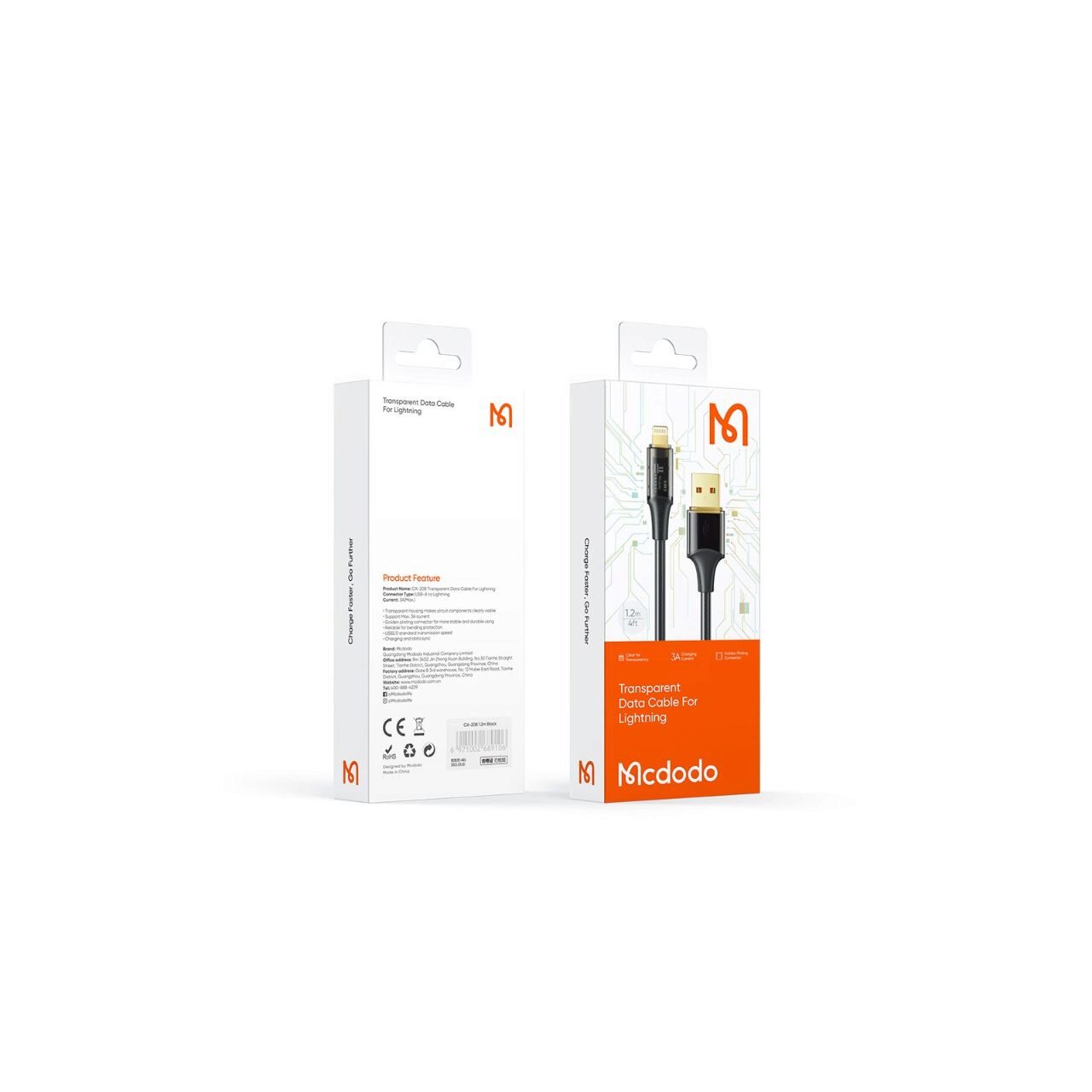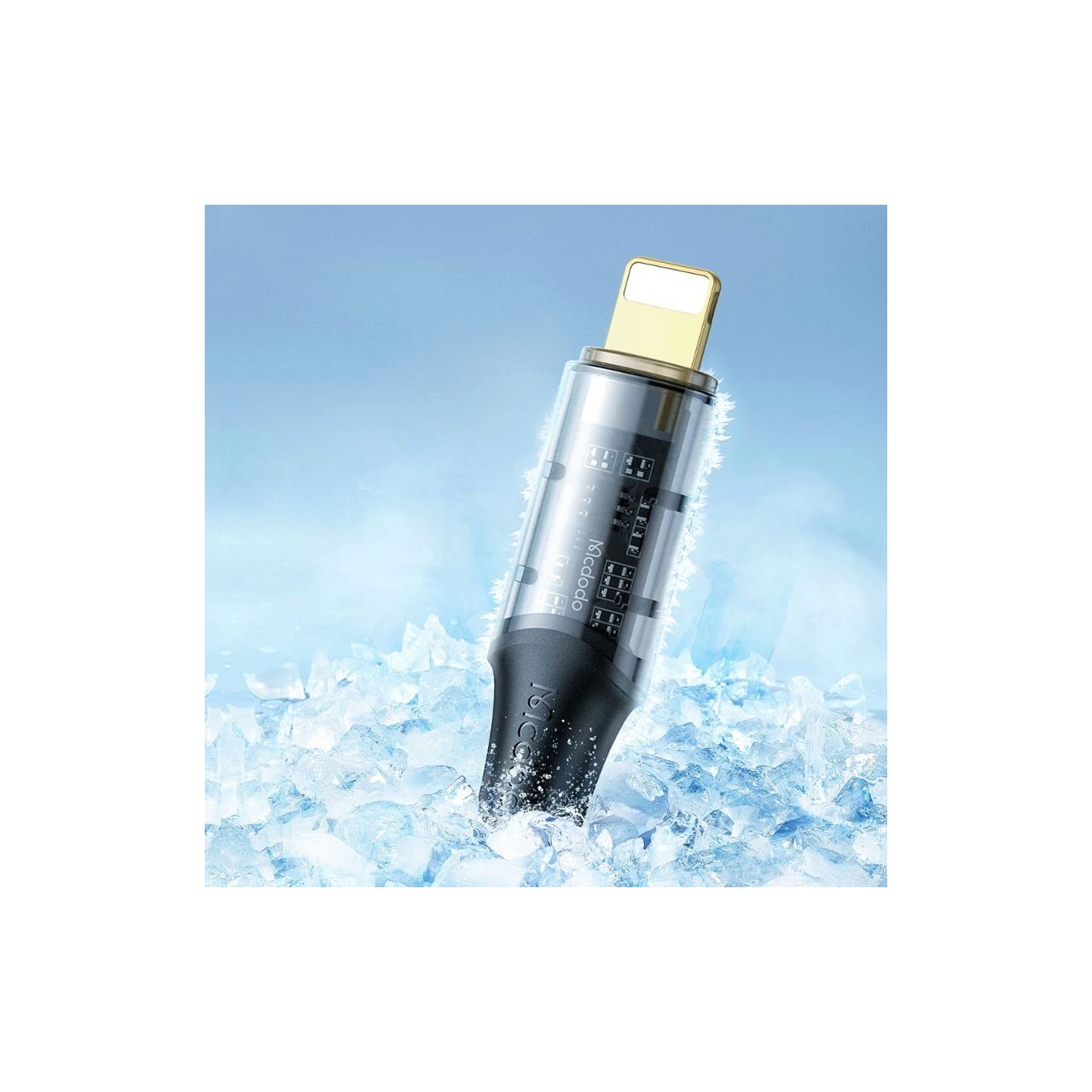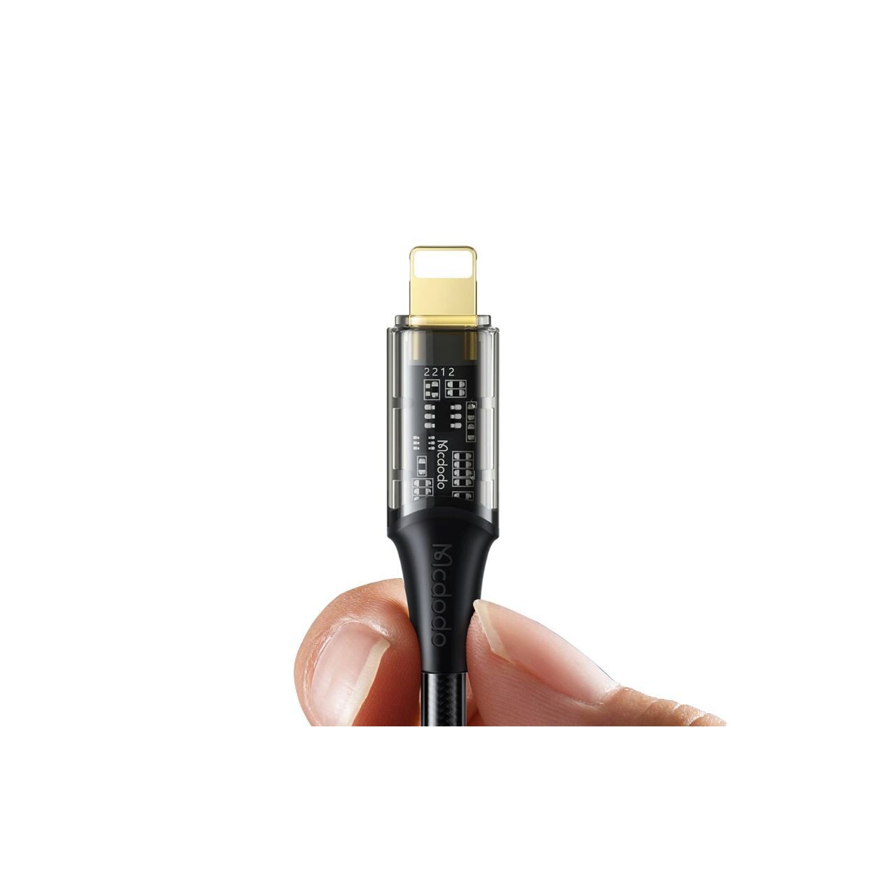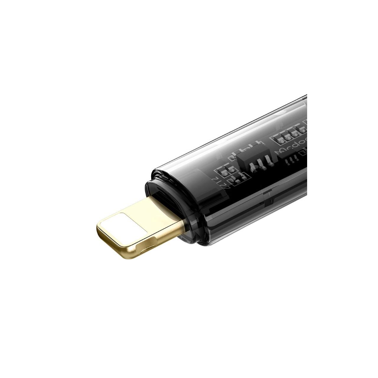 Mcdodo's Amber Series Fast Charging Lightning cable with transparent connector design, to clearly see the circuit components, absolutely striking cable.