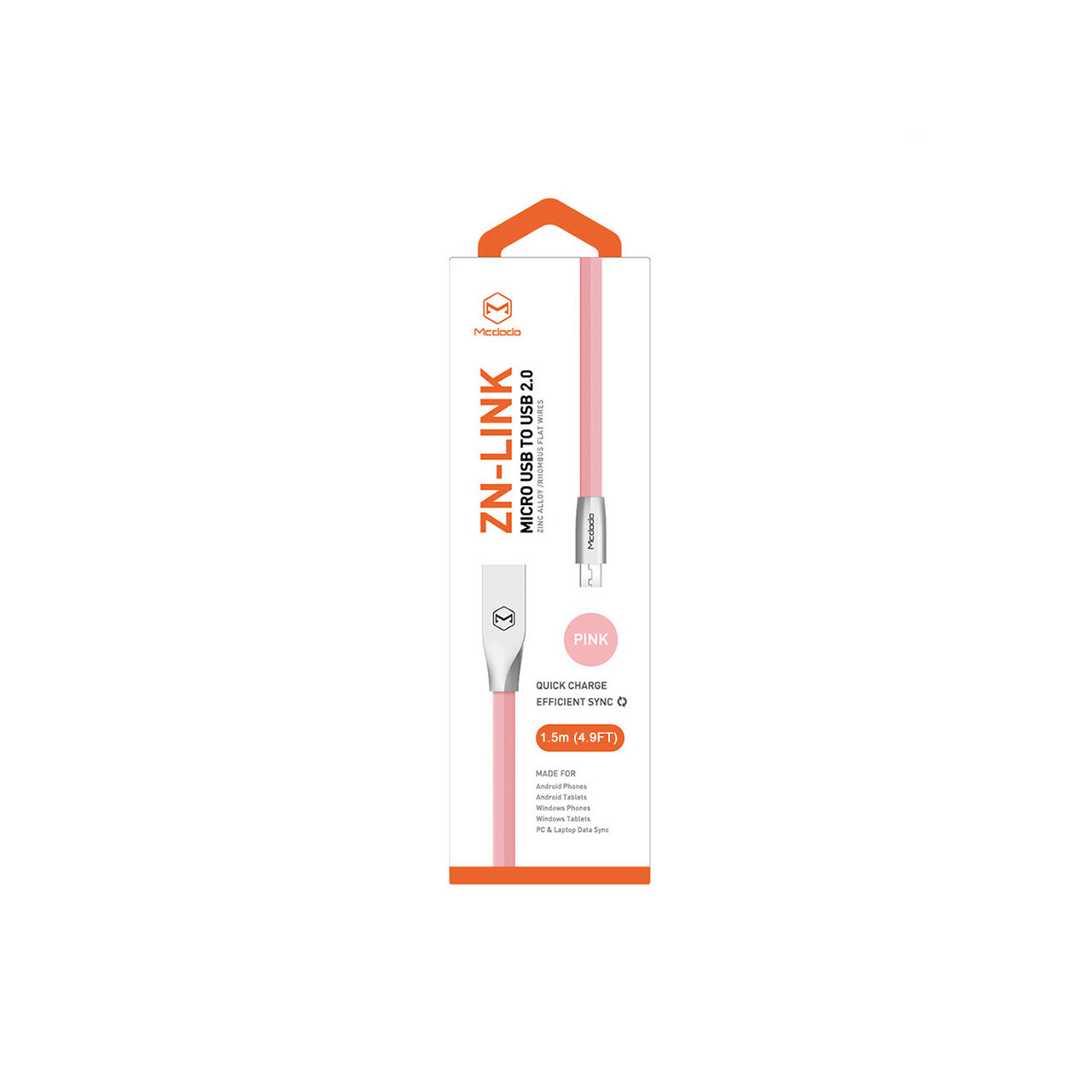 Mcdodo Cable Zn-Link Silver MicroUSB Pink (1.5m, 2.4A max)