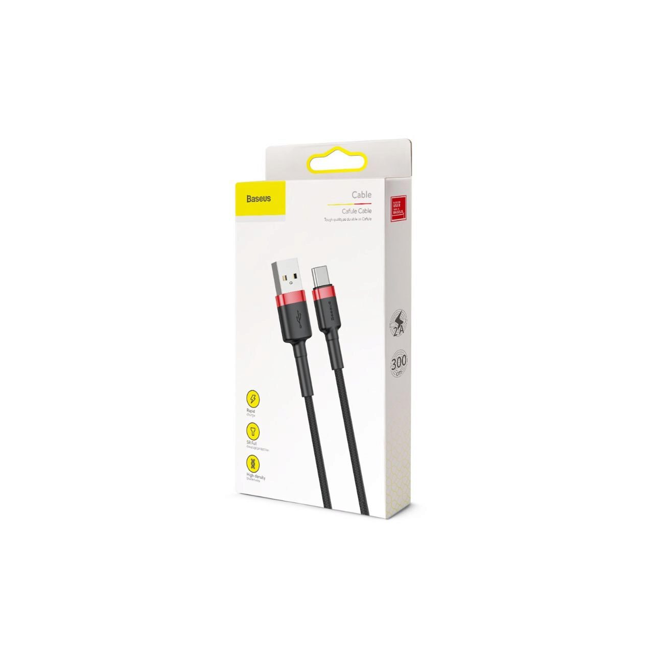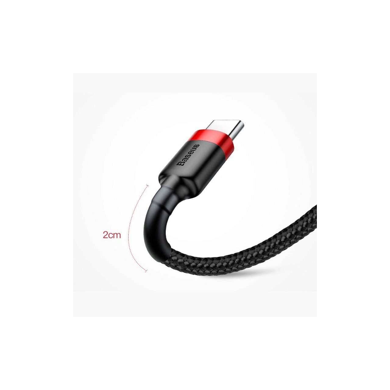 The Cafule Series USB to Type-C cable from Baseus can be used both for charging and data synchronization together with devices with a Type-C connector. It is covered in textile mesh for increased resistance and to prevent tangling, and to be protected against breakage, it has an extension of the flexible plastic material that covers both part of the plugs and part of the wire. The cable has been tested and created so as to withstand the repeated stretching and bending to which it is subjected every day.