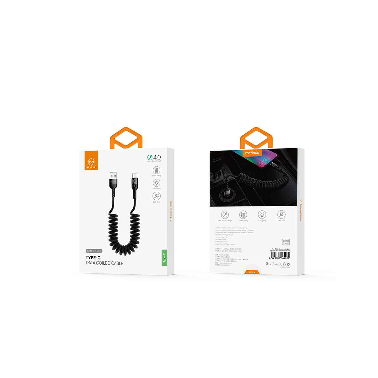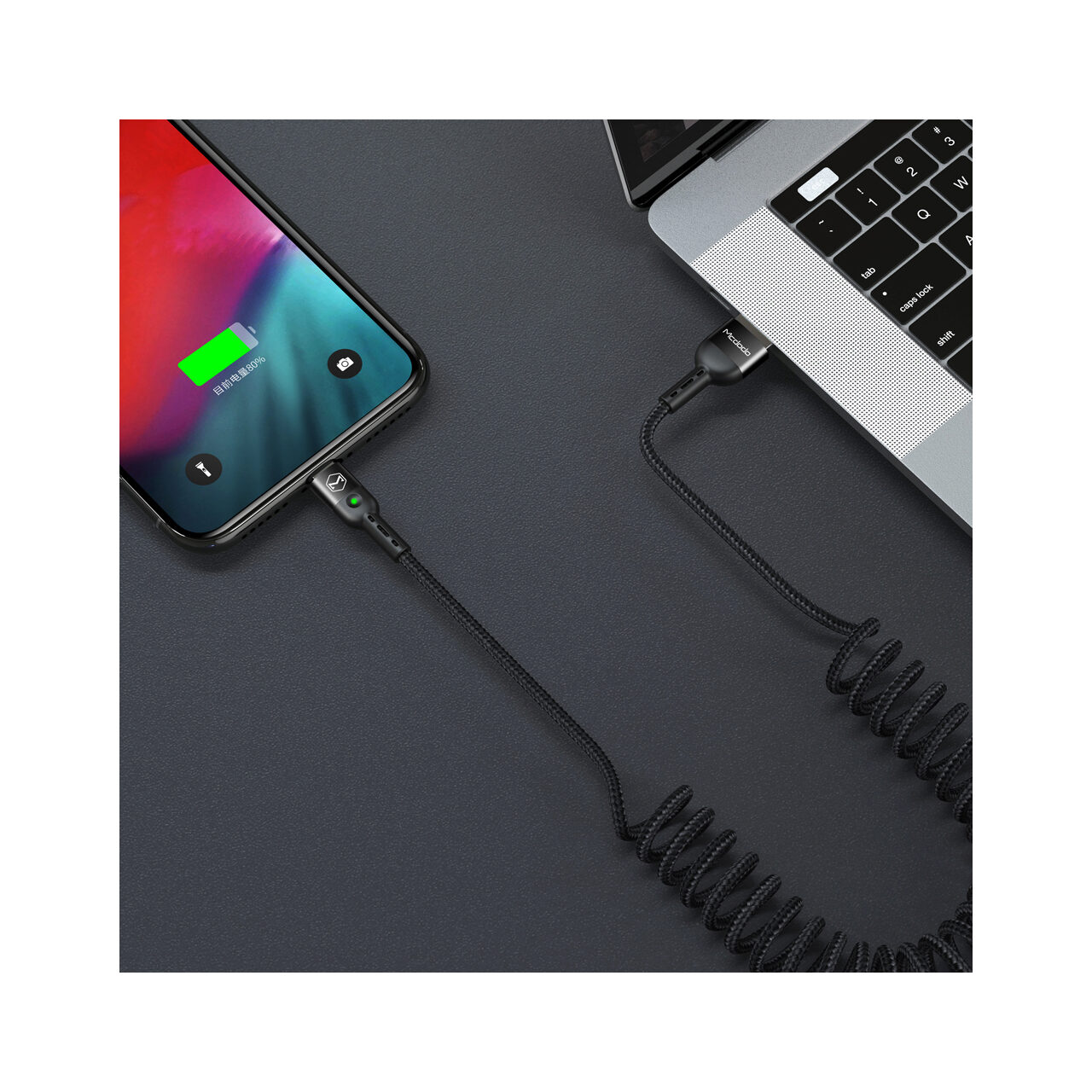 The Mcdodo Omega Series cable has a special, retractable design, ideal for use in the car and beyond. The cable tightens itself like an elastic band after use and can be easily stored without taking up space and without getting tangled.