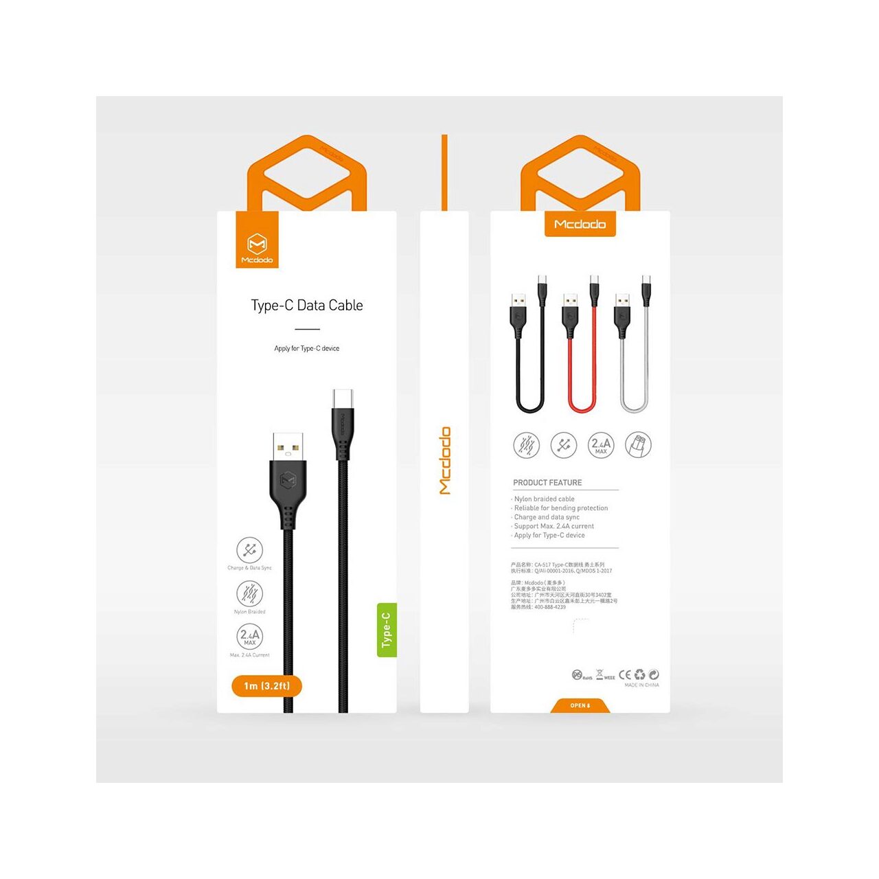 Mcdodo's Warrior Series Type-C cable can be used both for charging and for data synchronization together with devices with a Type-C connector. It is made of flexible plastic material for increased resistance, and in order to be protected against breakage, it has a protection made of rubber material at the meeting between the cable and the plugs.