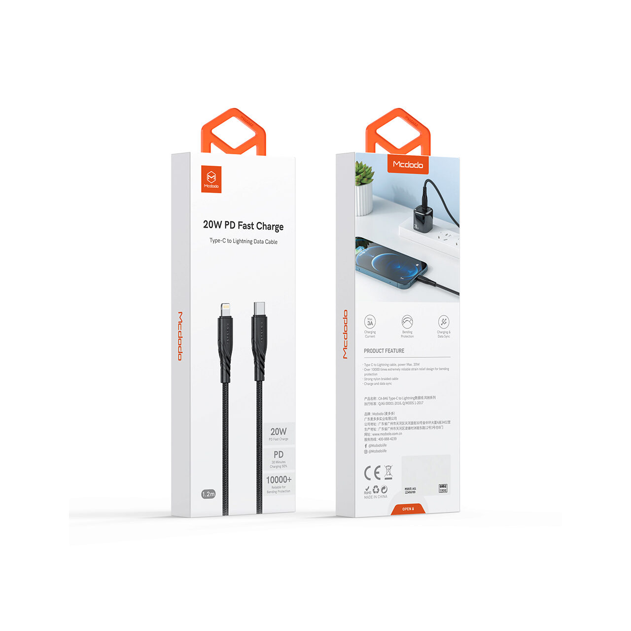 Mcdodo Cable Fast Charge Type-C to Lightning Black (PD, 1.2m, 20W)