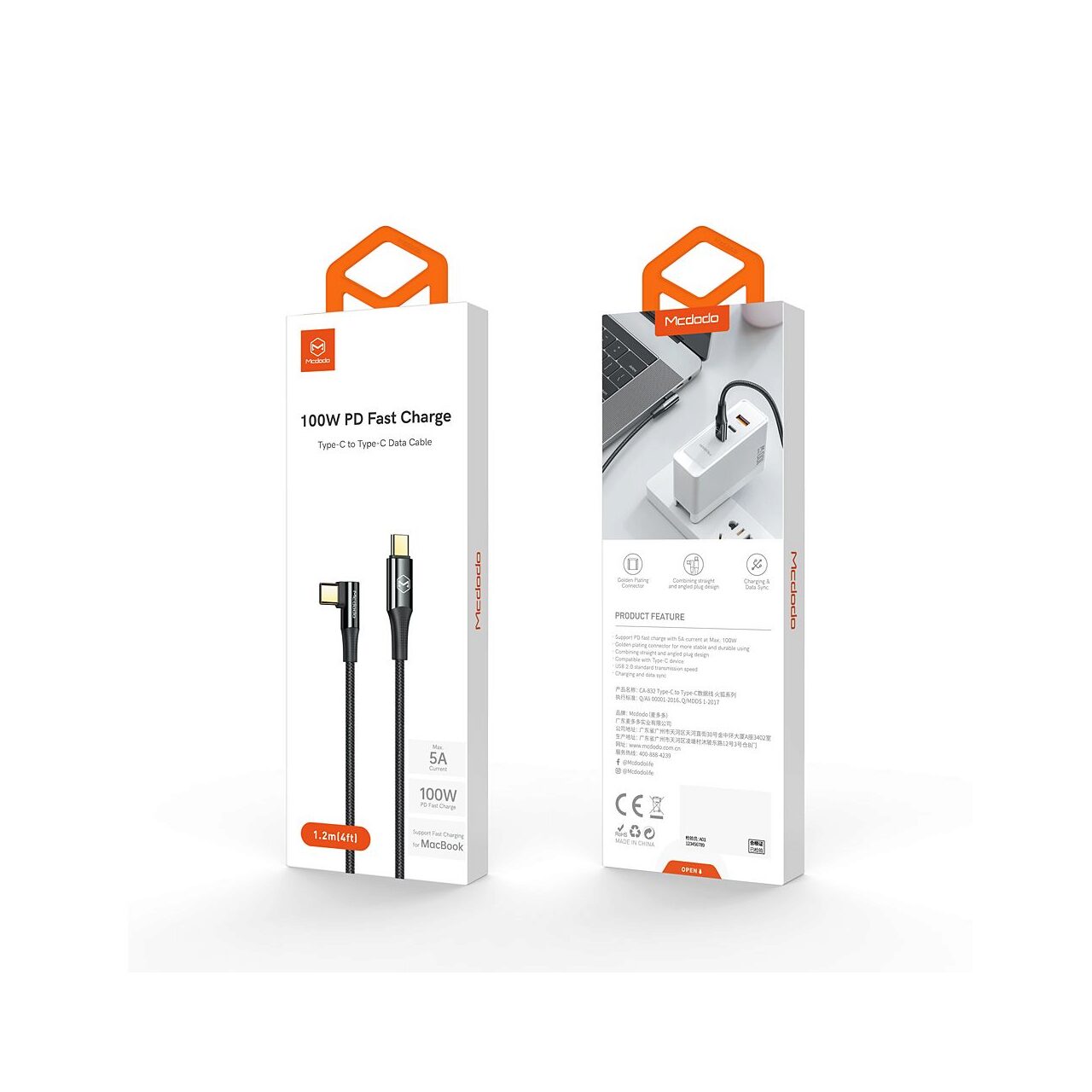 The Firefox Fast Charge Type-C to Type-C cable from Mcdodo is 1.2 meters long and is covered with a textile braid, very resistant to bending and everyday wear. You can use the Mcdodo PD Quick Charge Smart Series cable together with any charger with USB-C output to quickly charge your device with a Type-C plug (*to quickly charge the device, it is necessary that the charger used is compatible with the PD standard).