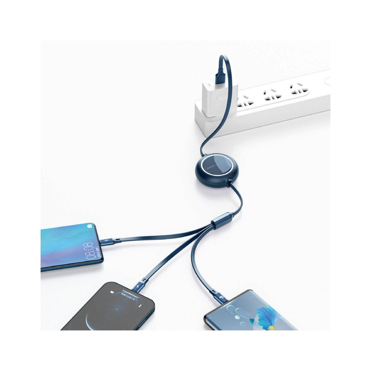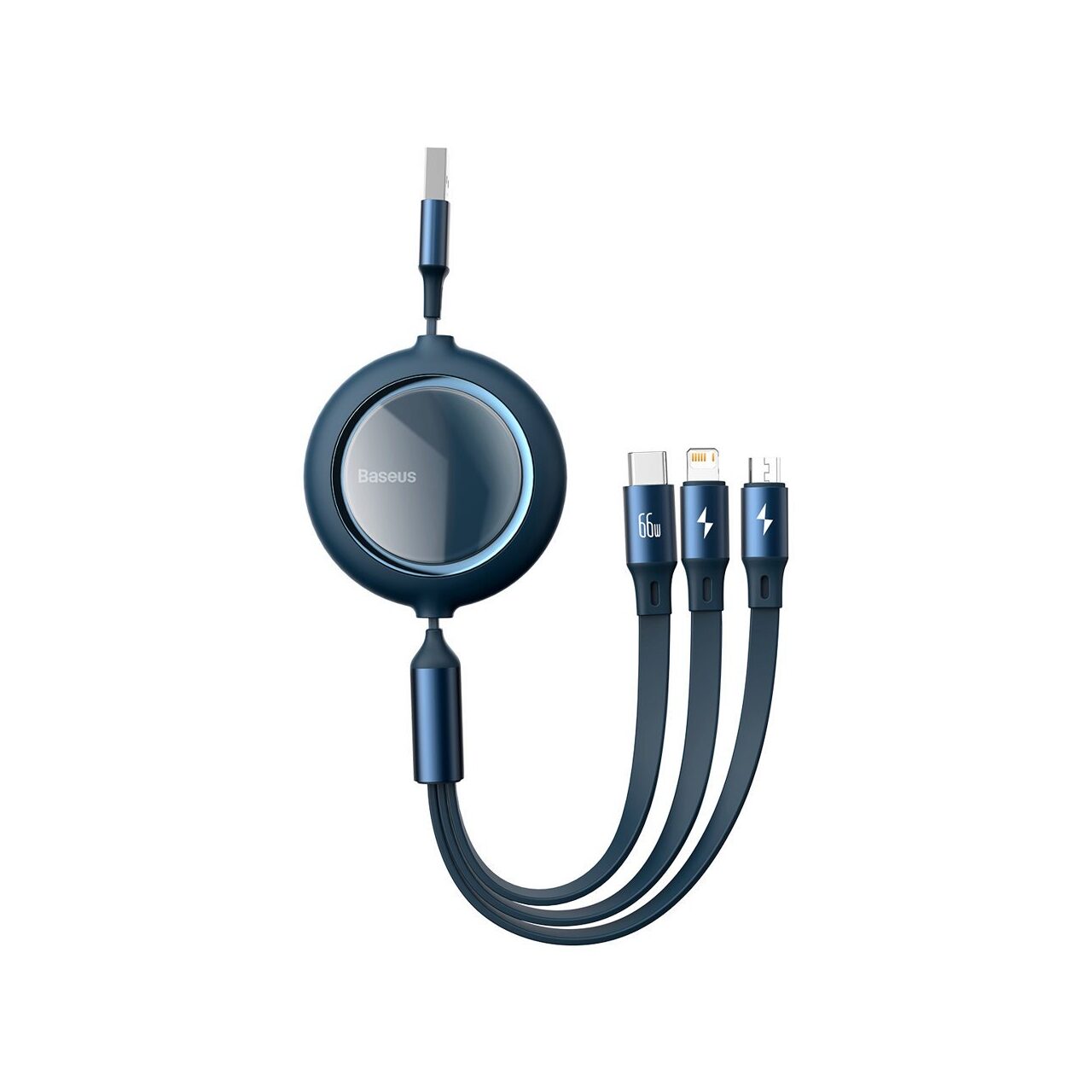 Baseus Bright Mirror Cable 3 in 1 Retractable USB to Lightning, MicroUSB and Type-c Blue (66W, 1.2m)