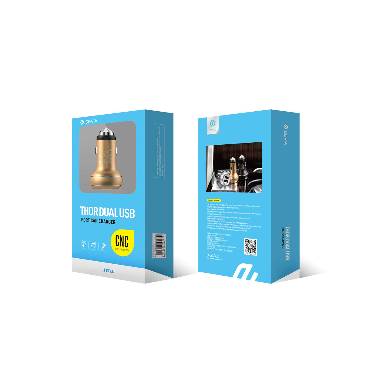 The Thor car charger produced by Devia is a car charger with two USB slots : 2.4 A and 1 A (total 2.4 A) , for charging smartphones or tablets. The materials used are of the best quality, and the design is very elegant and minimalist (cut with CNC technology).