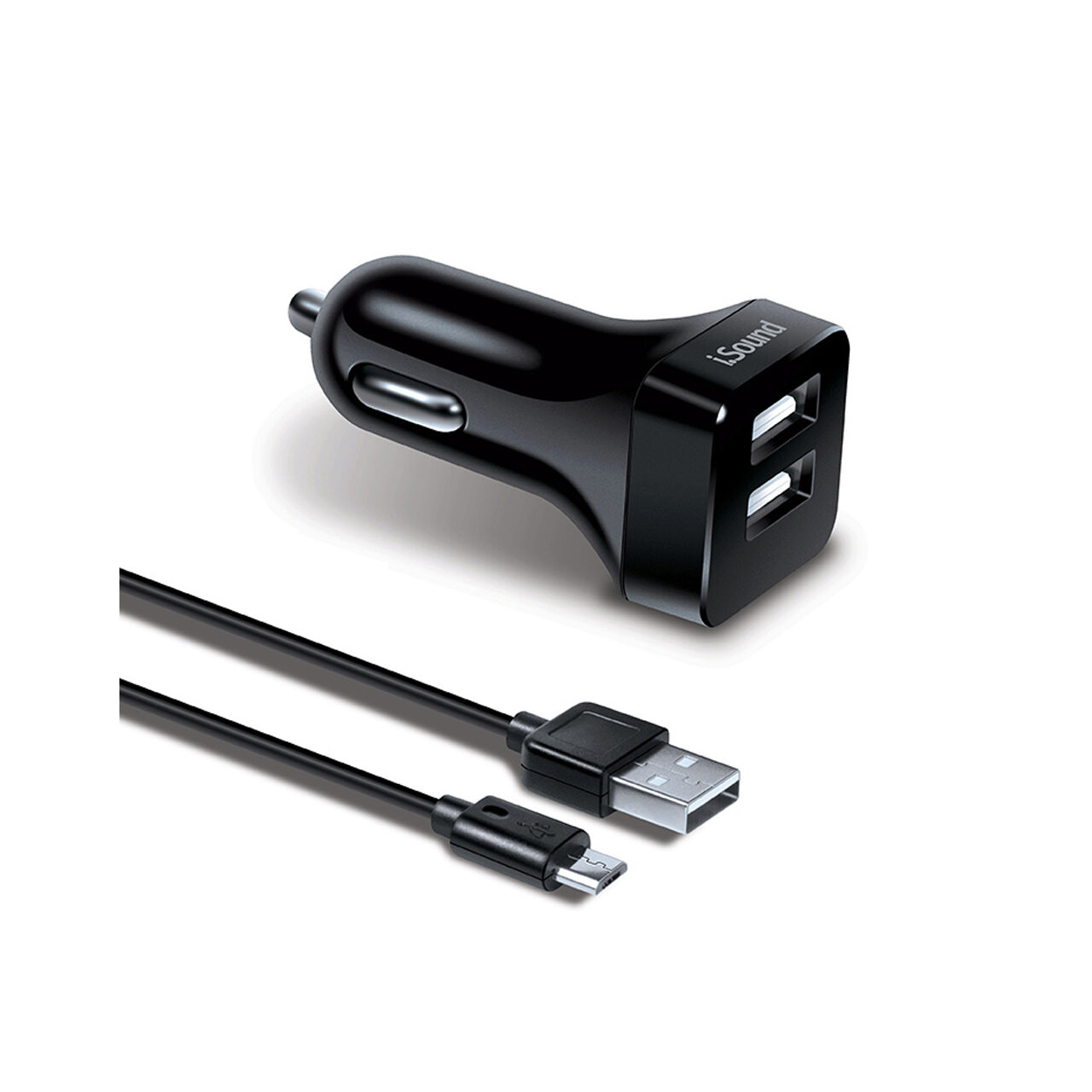 Car charger 2.4A iSound Dual USB Black (microUSB cable 1.2m)