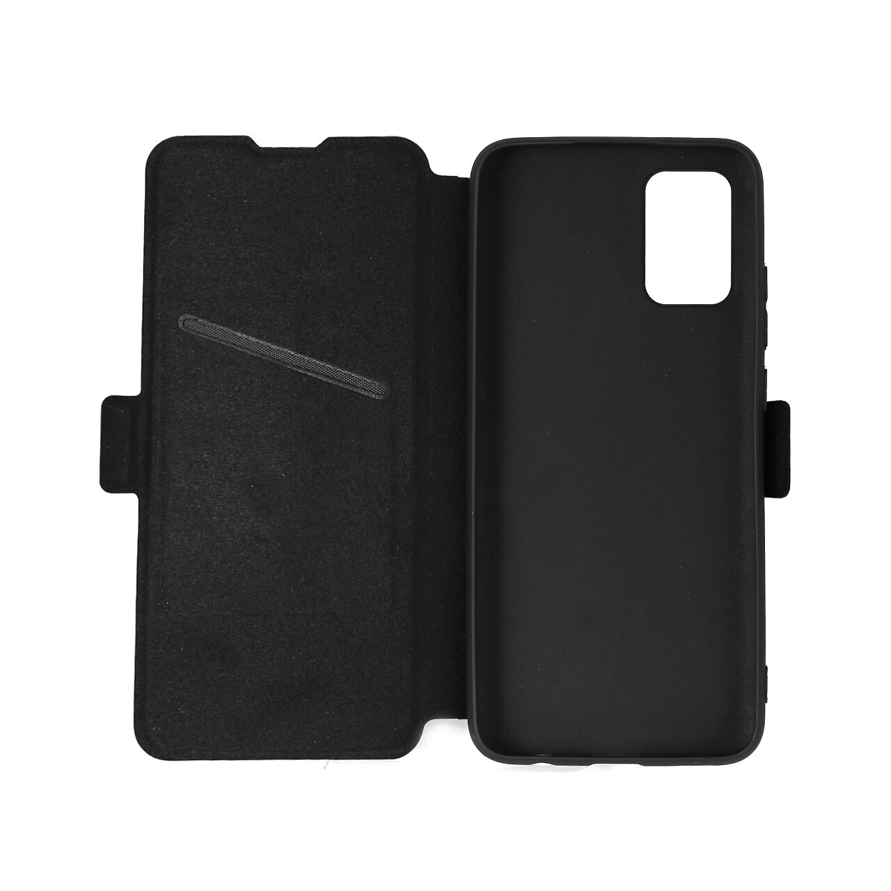 The magnetic closure keeps the phone safe and makes it easy to access when needed. The inside of the flap is lined with a fine material, with a pocket where you can store a card.