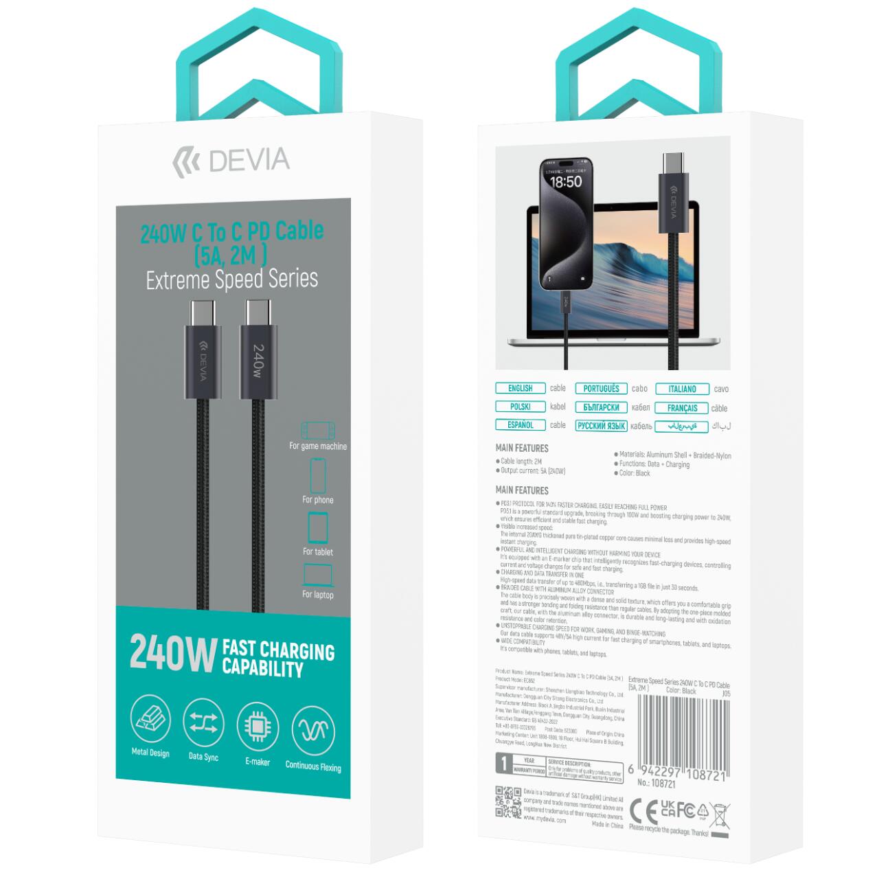 Devia Cablu Extreme Speed Type-C la Type-C Fast Charge PD 240W 5A, 2m, Negru