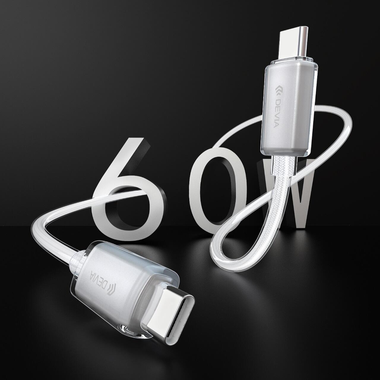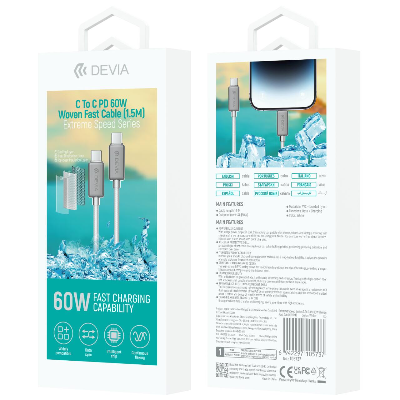 Devia Cablu Extreme Speed Woven Type-C la Type-C Fast Charge PD 60W, 1.5m, Alb