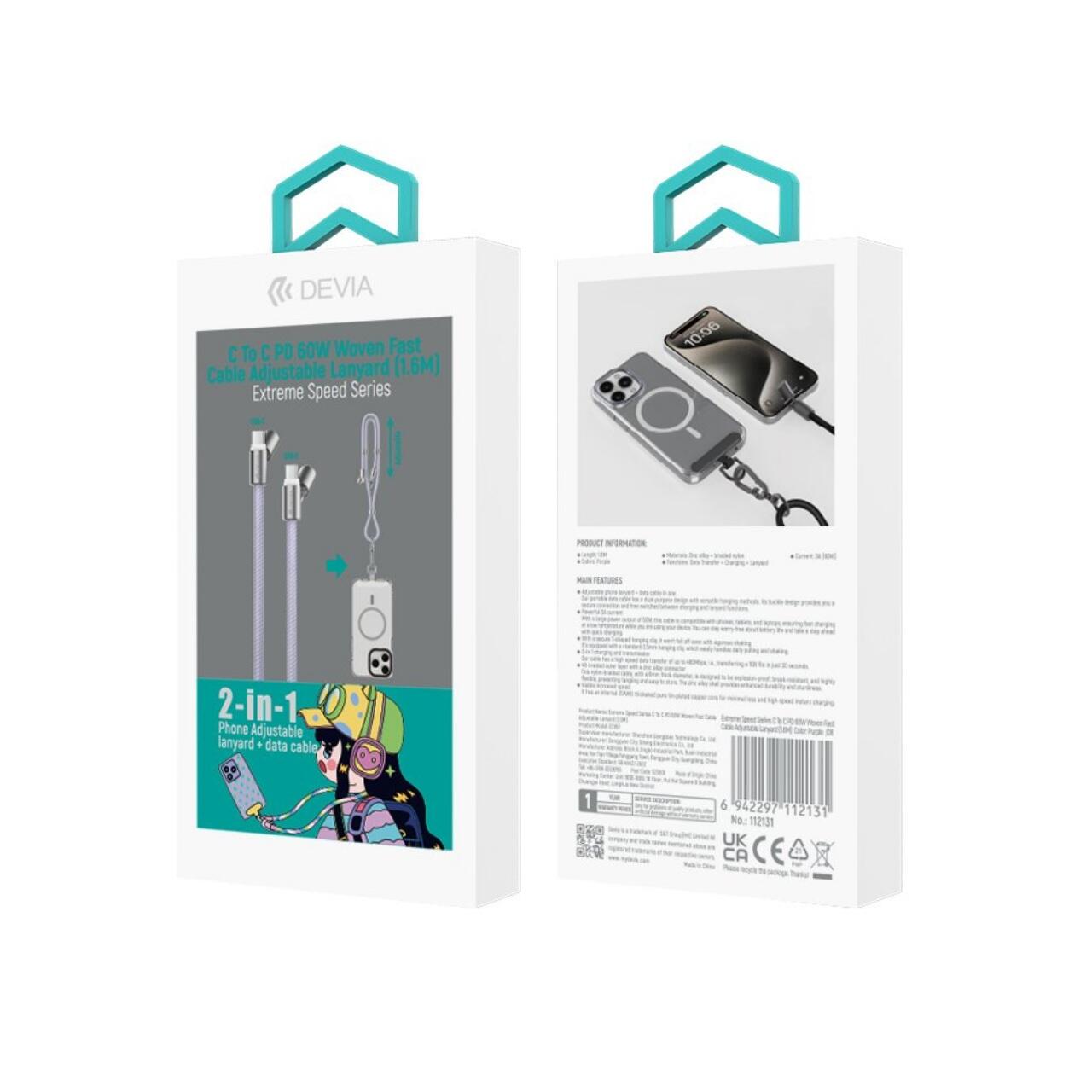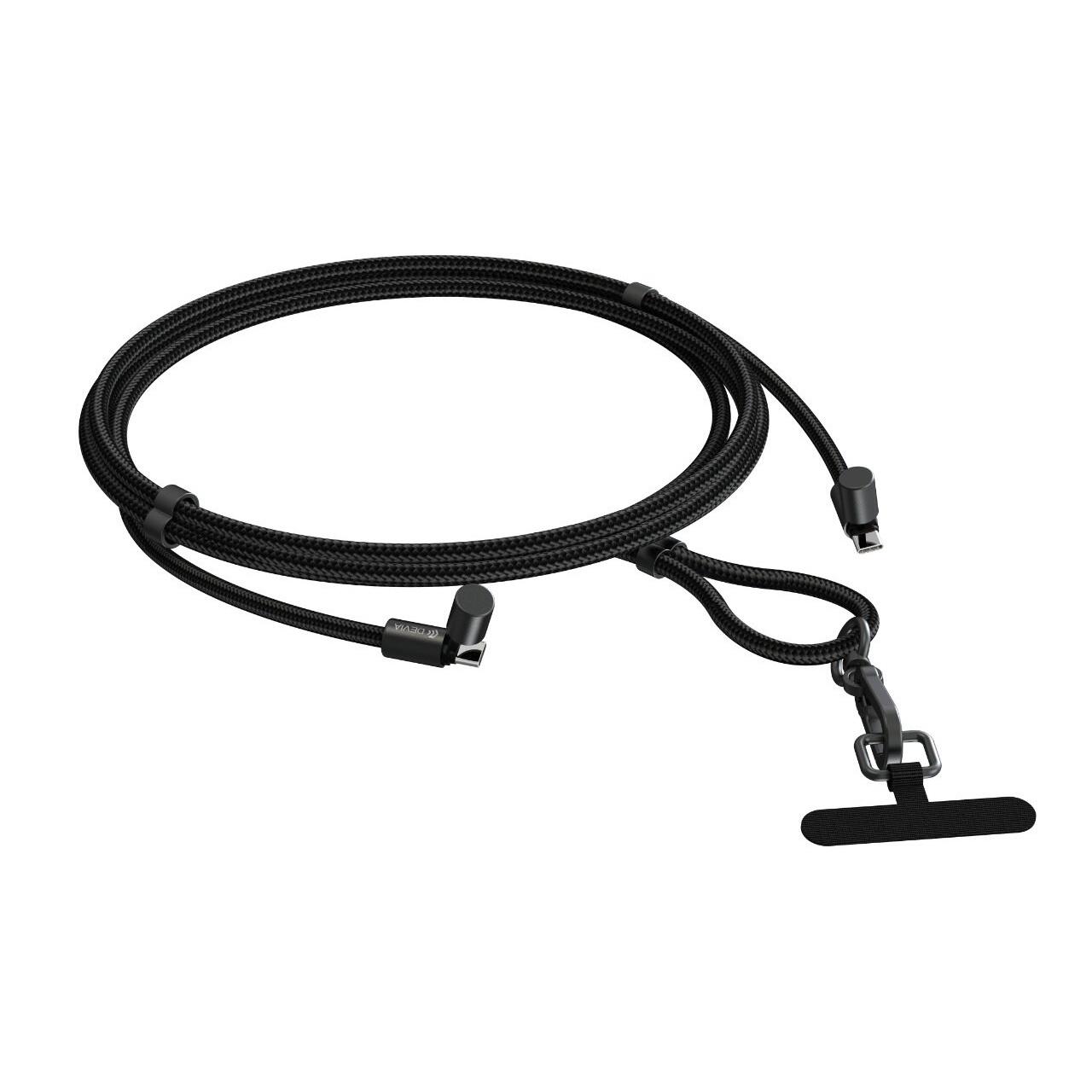 Devia Cablu Extreme Speed Woven Type-C la Type-C Fast Charge PD 60W, 1.6m cu snur ajustabil, Negru