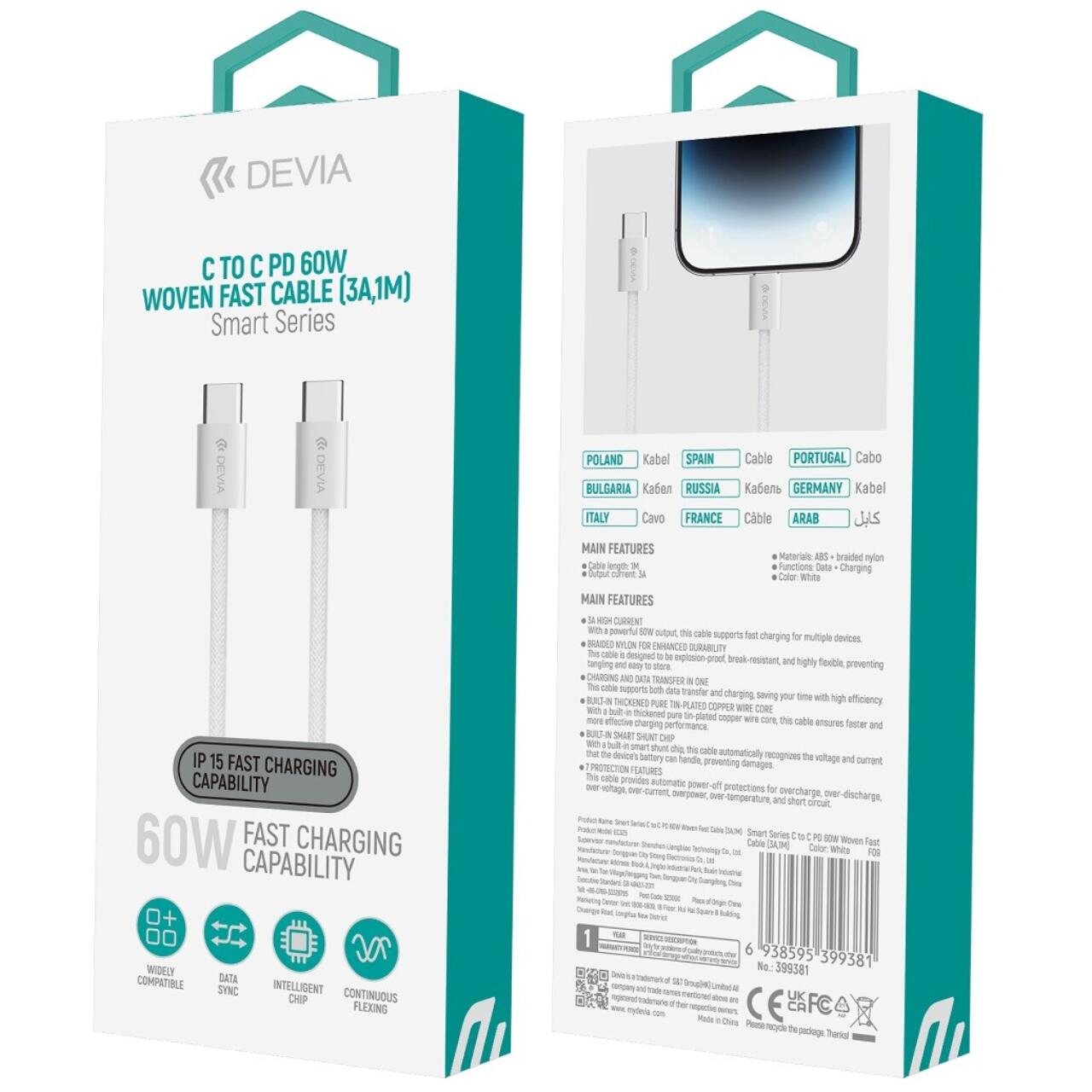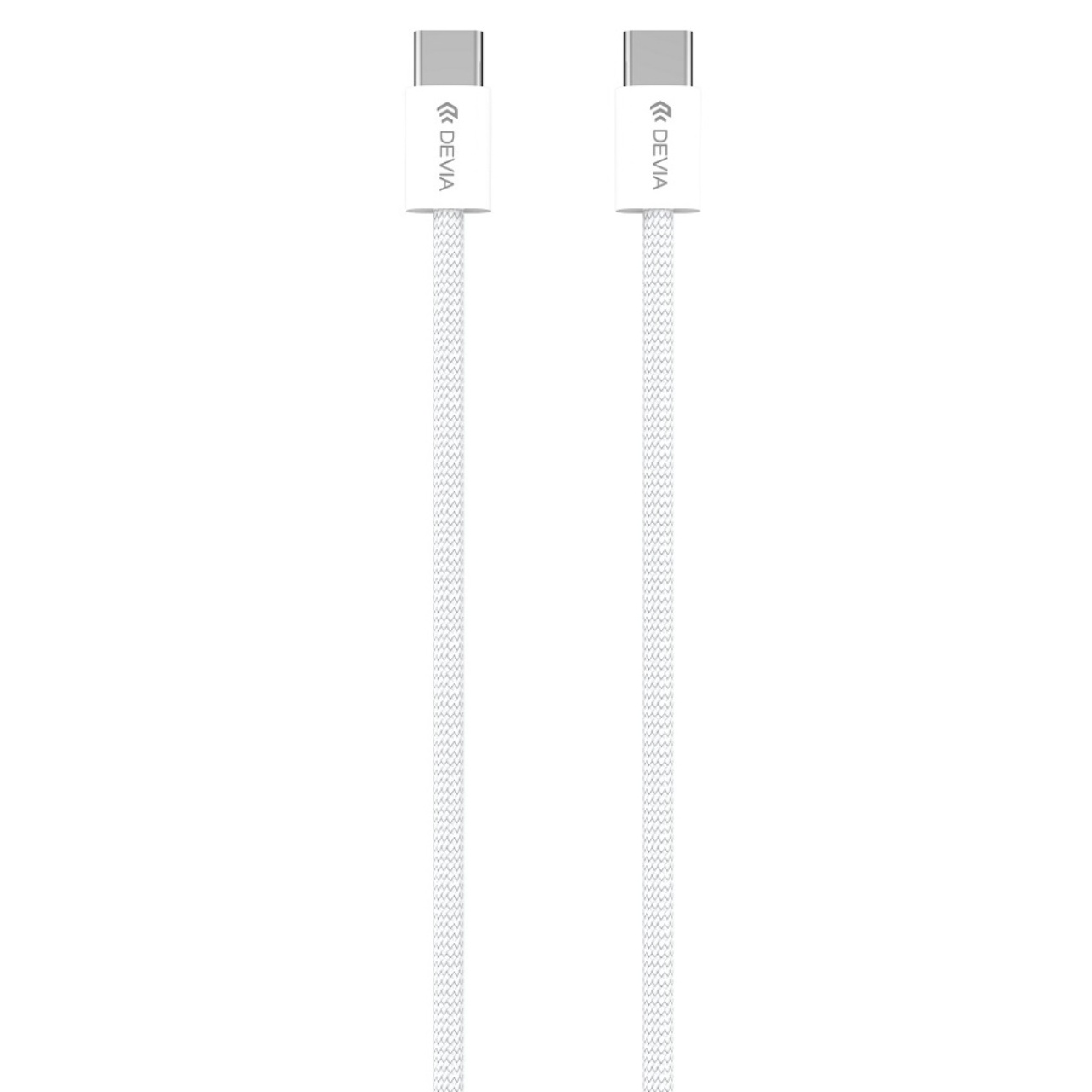 Devia Cablu Smart Woven Type-C la Type-C, Fast Charge, 60W, 3A, 1m, Alb