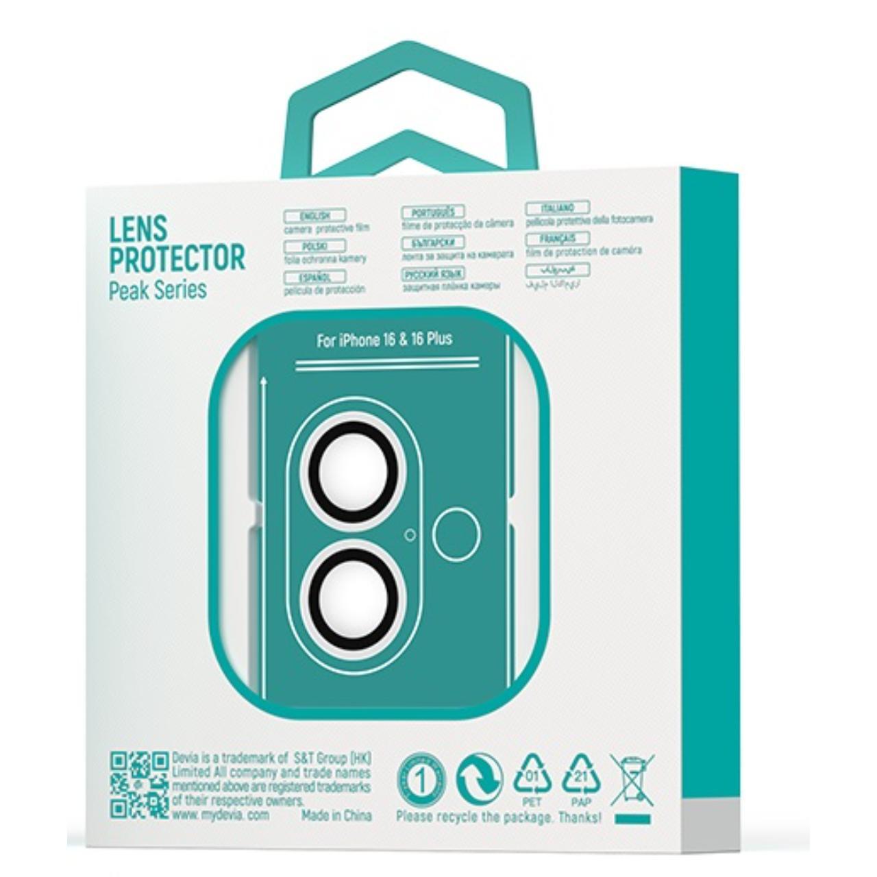 Devia Folie Sticla Camera Peak Series Crystal iPhone 16 / 16 Plus pachet de 2 buc Transparent