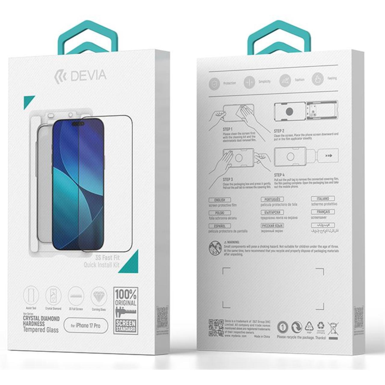 Devia Folie Sticla Van Series Crystal Sapphire iPhone 17 Pro, Black, cu kit special de montare