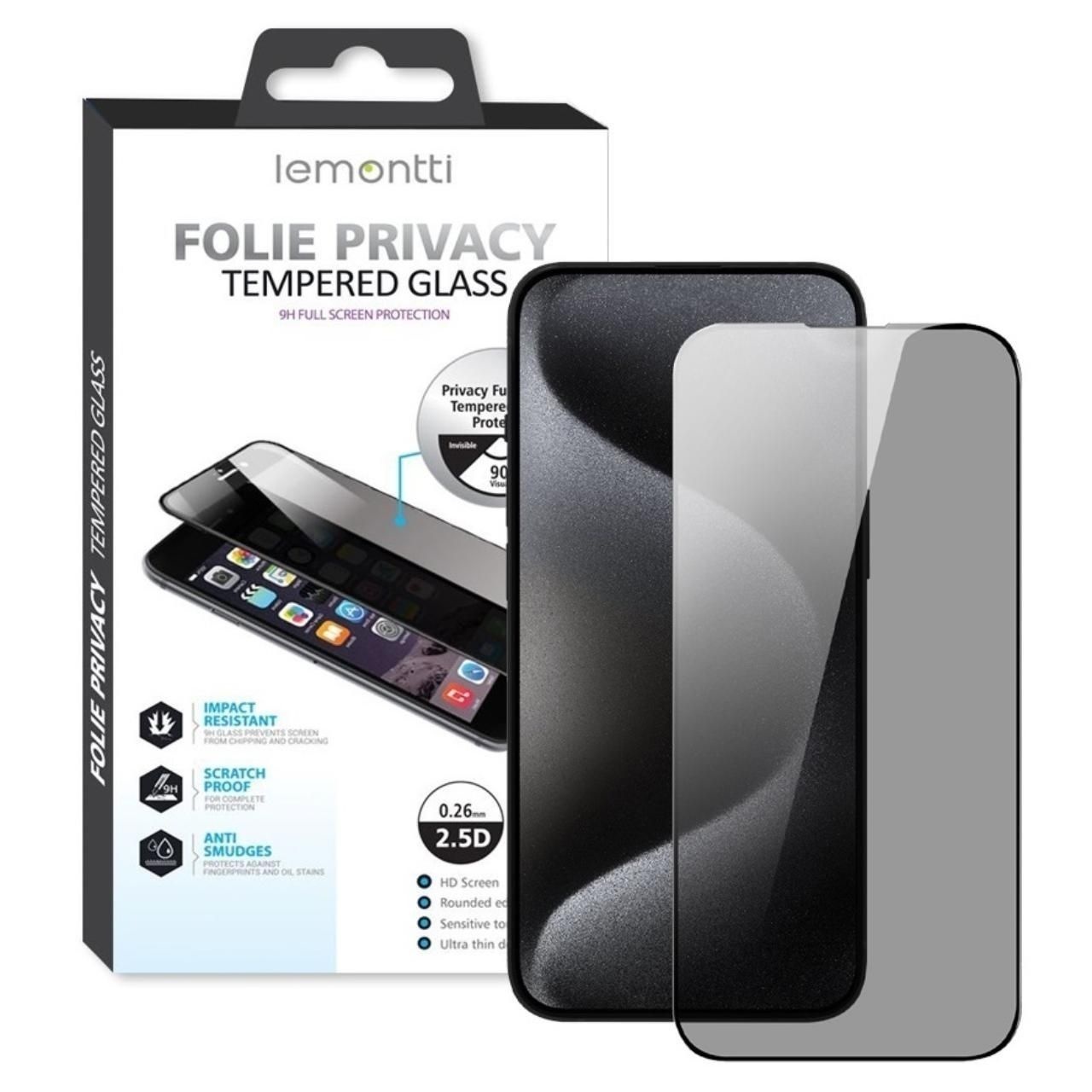 Lemontti Folie Glass Full Fit Privacy iPhone 14 Pro Max Black (9H, 0.33mm)
