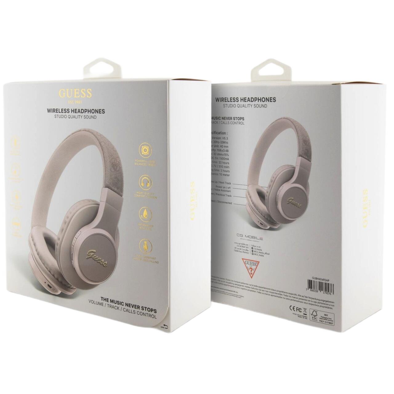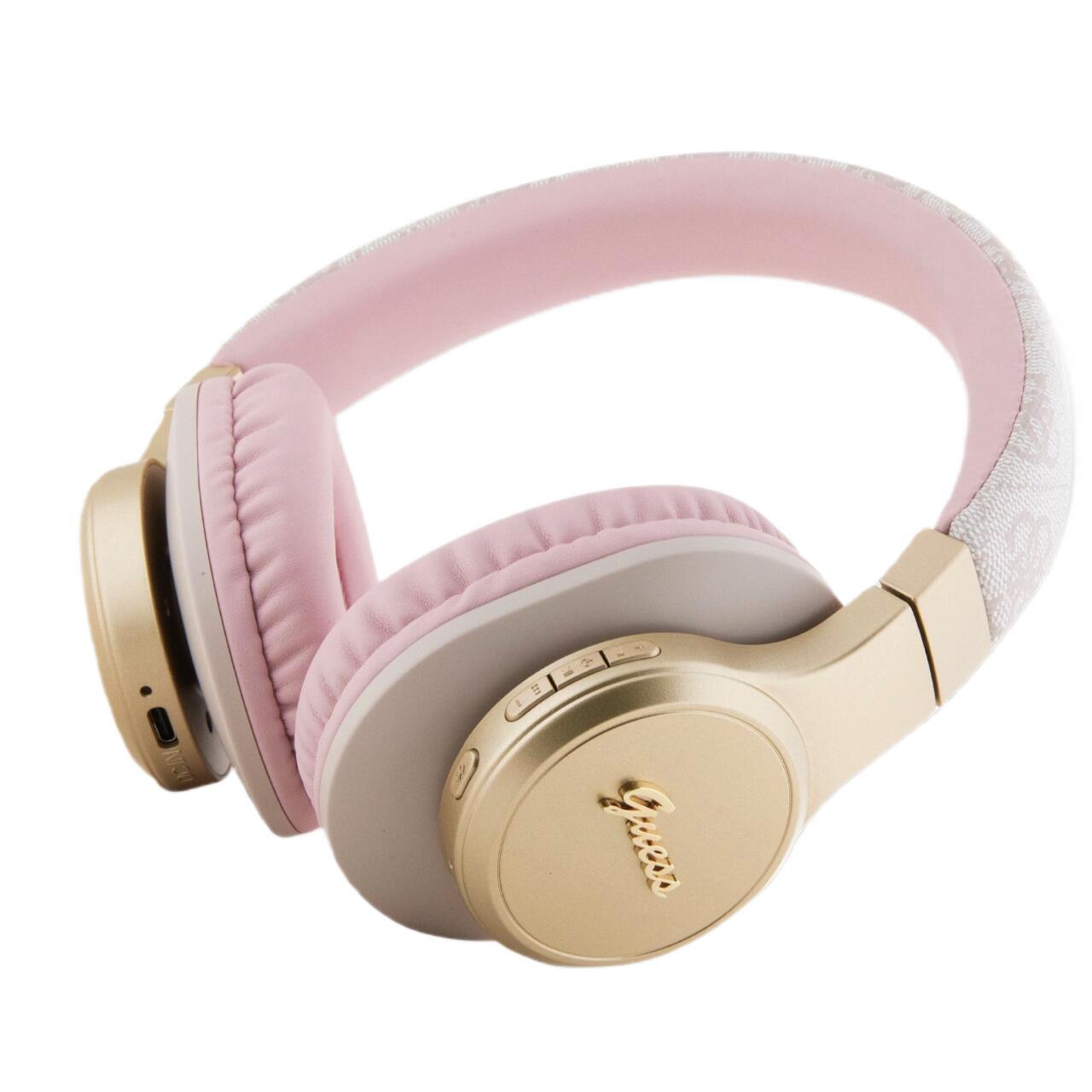Guess Casti Bluetooth Wireless Over-Ear PU Leather 4G Script Logo Roz