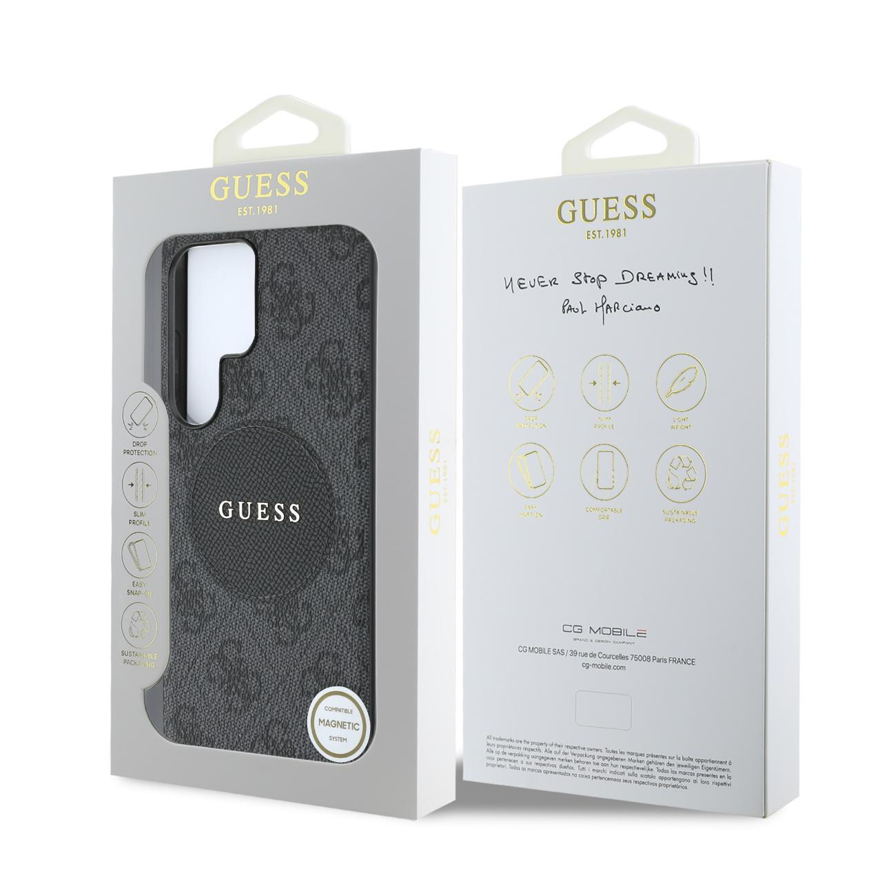 Guess Husa 4G Round Patch Classic Logo MagSafe Samsung Galaxy S25 Ultra Negru