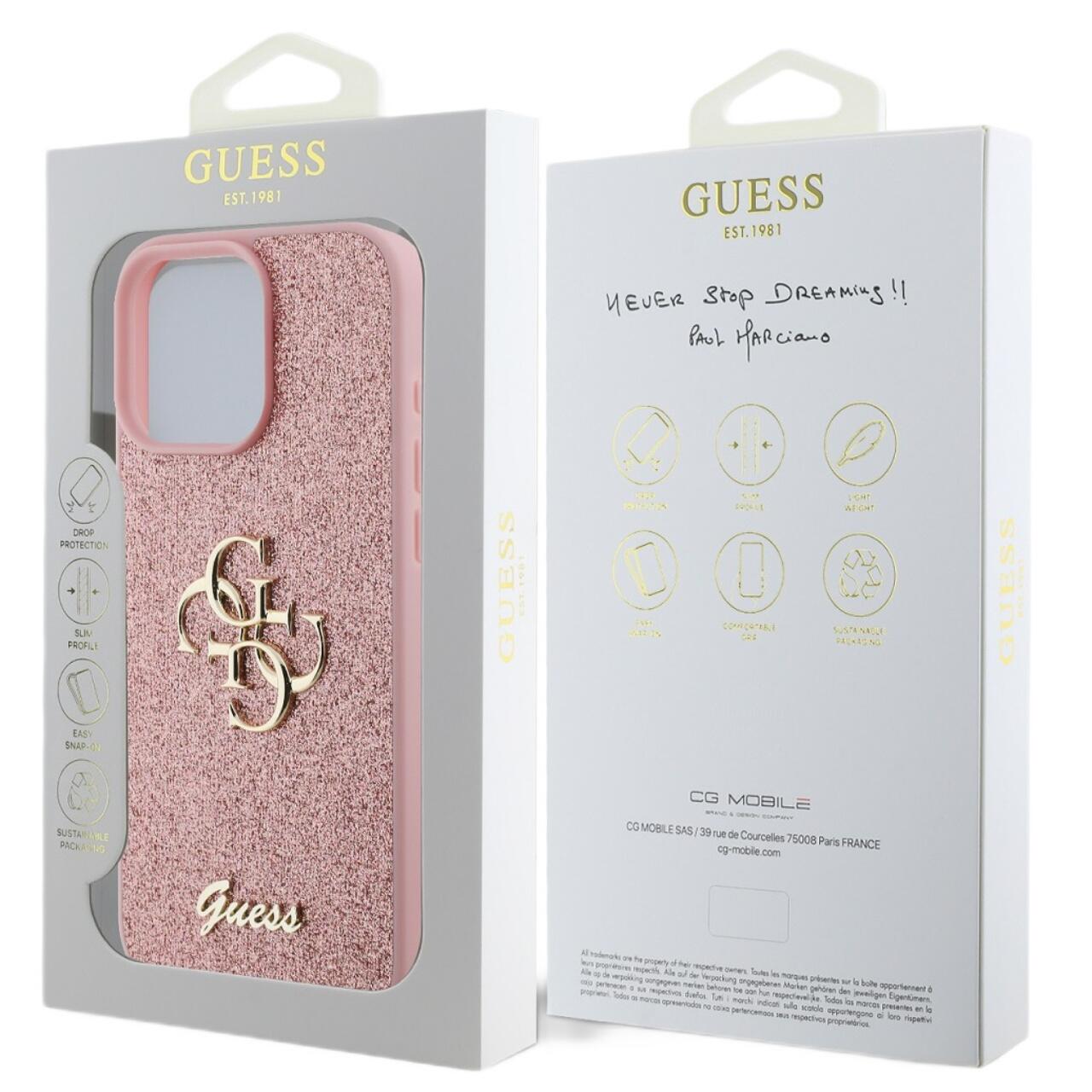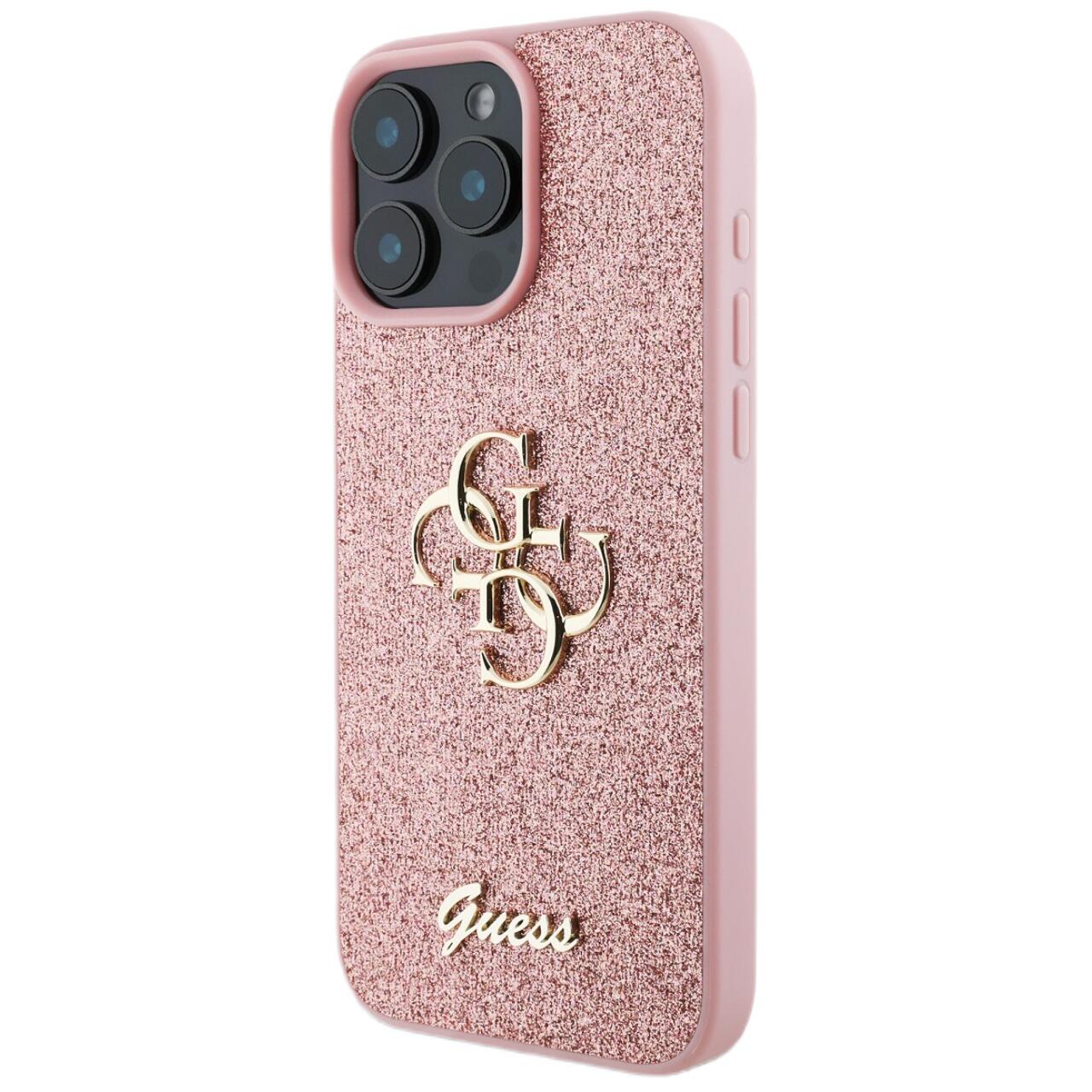 Guess Husa Fixed Glitter 4G Metal Logo iPhone 16 Pro Max Roz