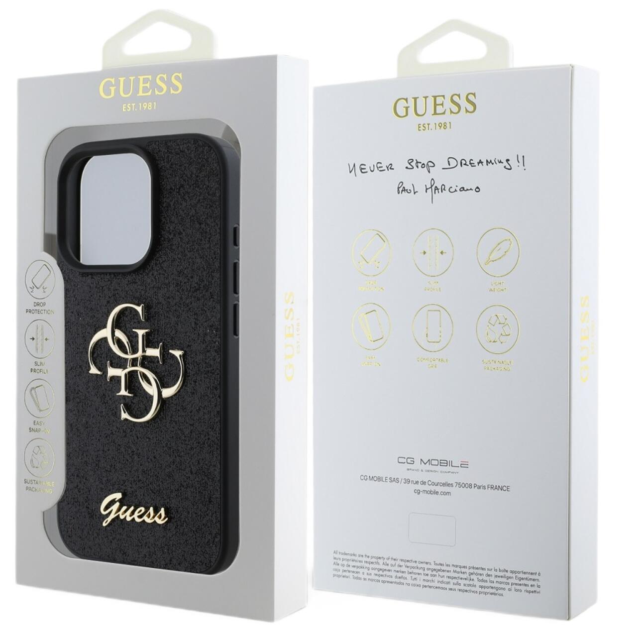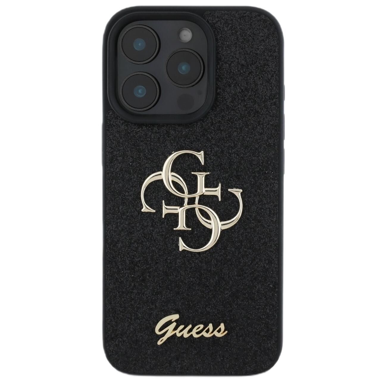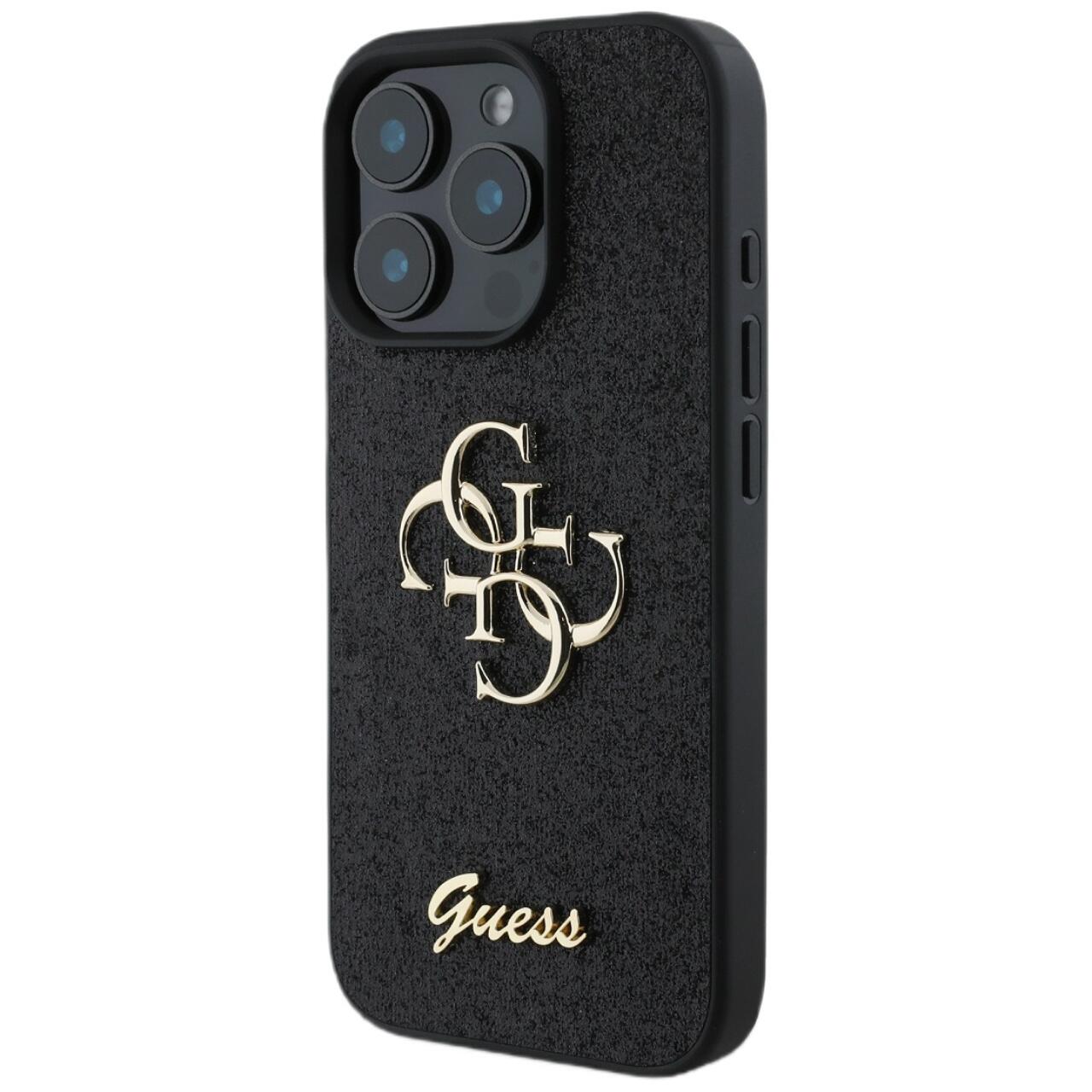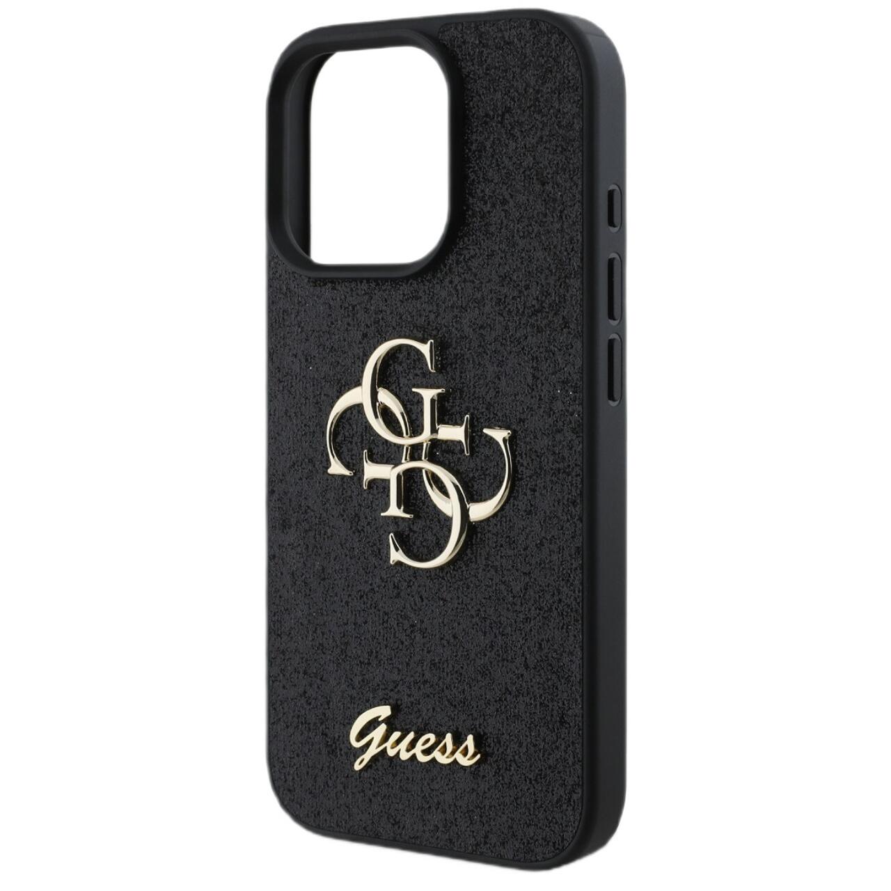 Guess Husa Fixed Glitter 4G Metal Logo iPhone 16 Pro Negru