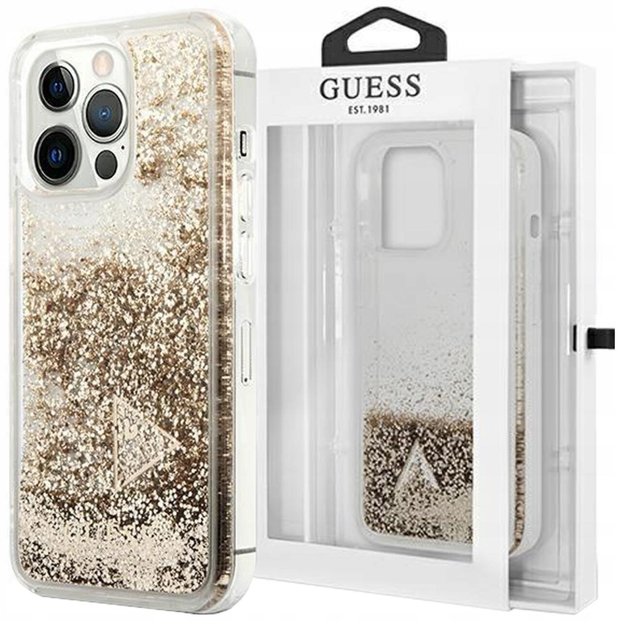 Guess Husa Glitter Charms iPhone 14 Pro Auriu