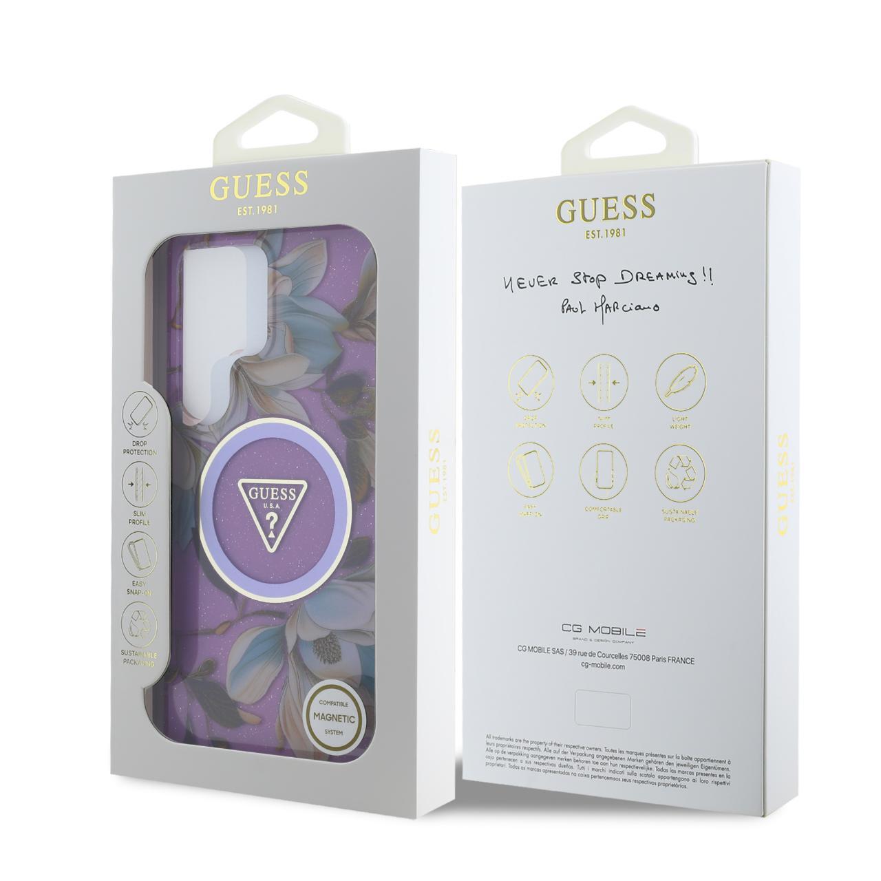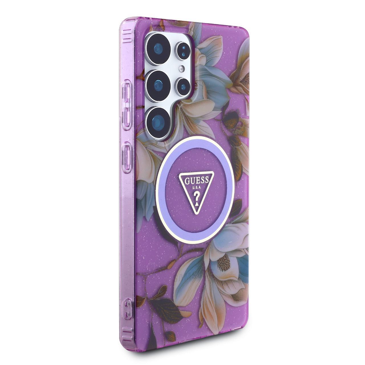 Guess Husa Glitter Flowers Triangle Buttons MagSafe Samsung Galaxy S25 Ultra Mov