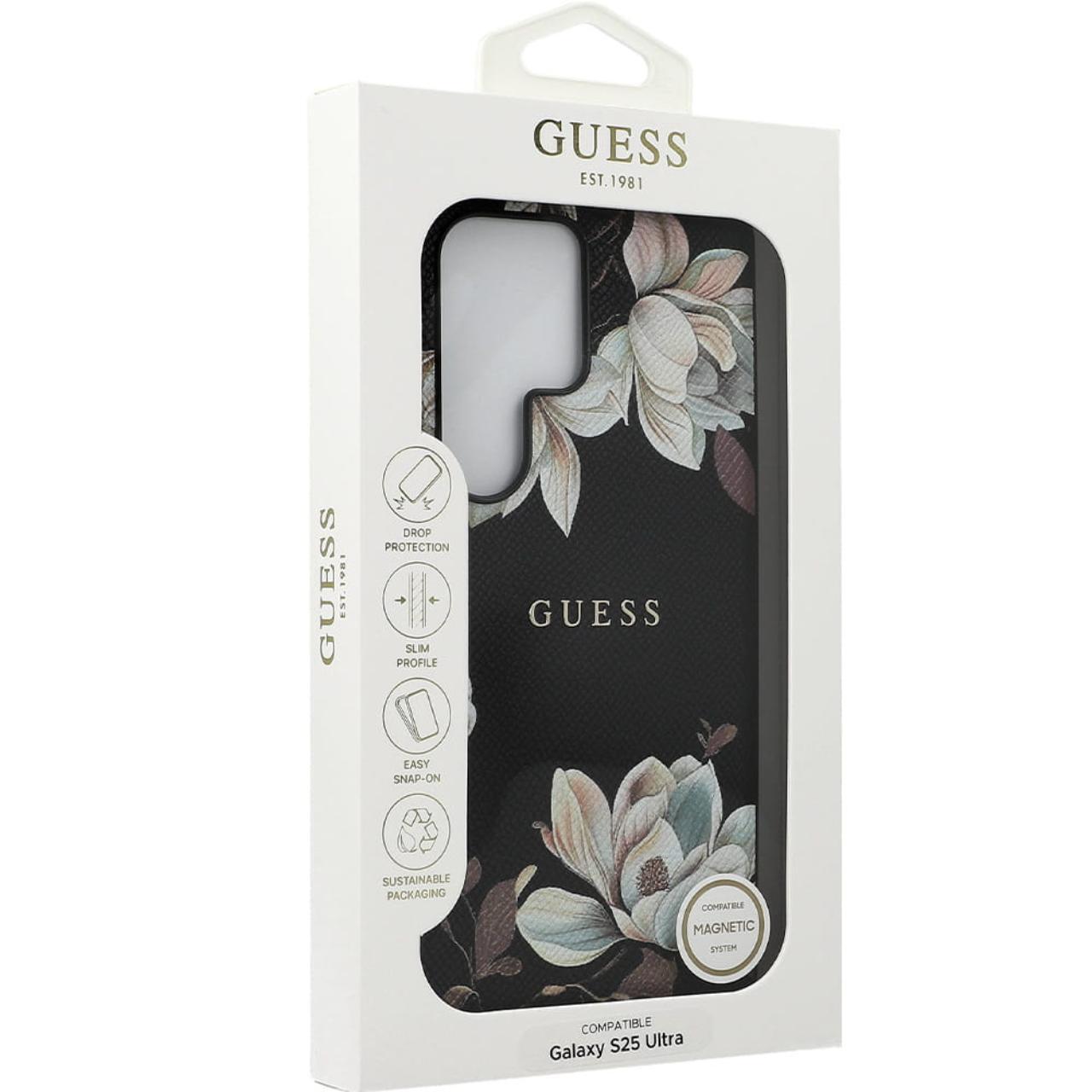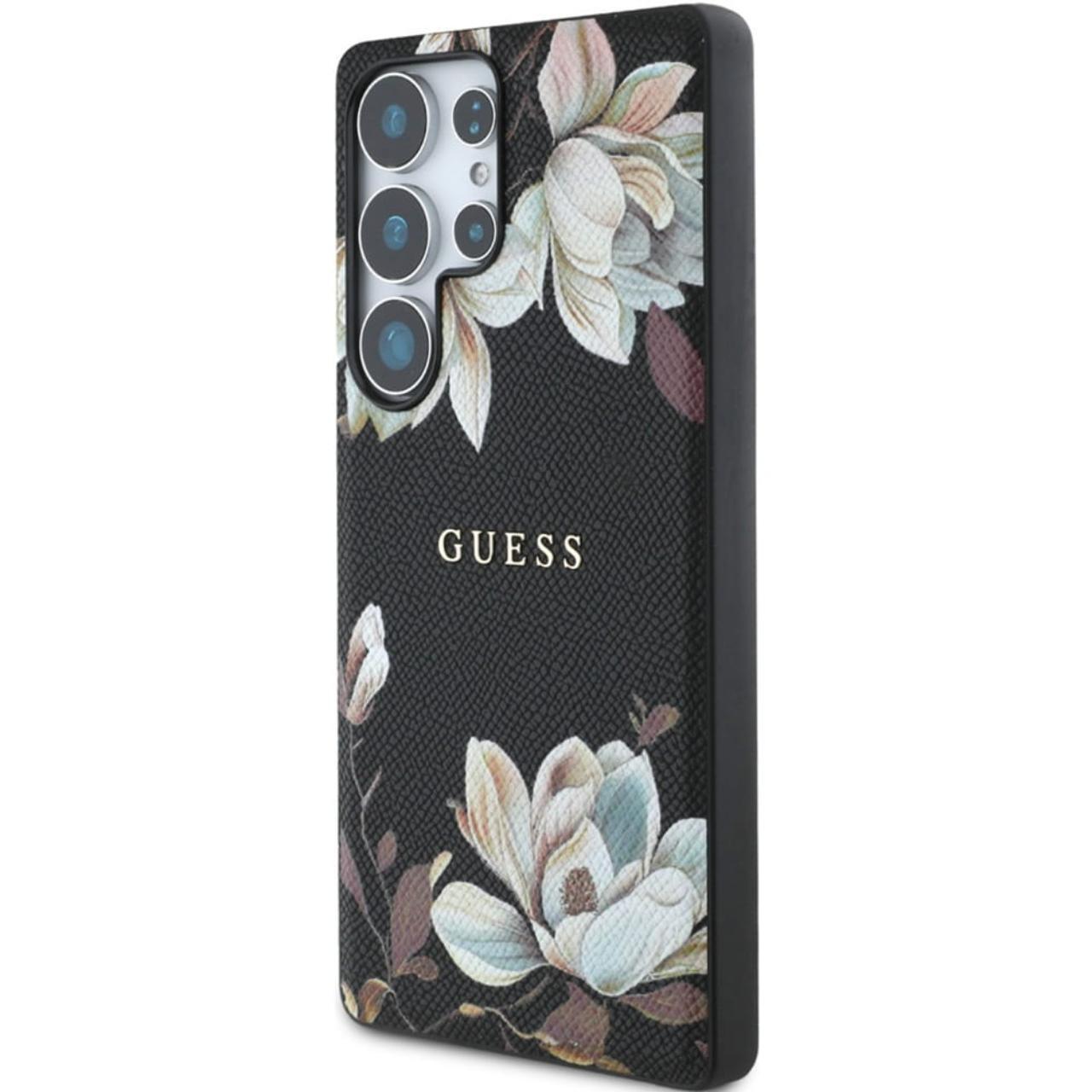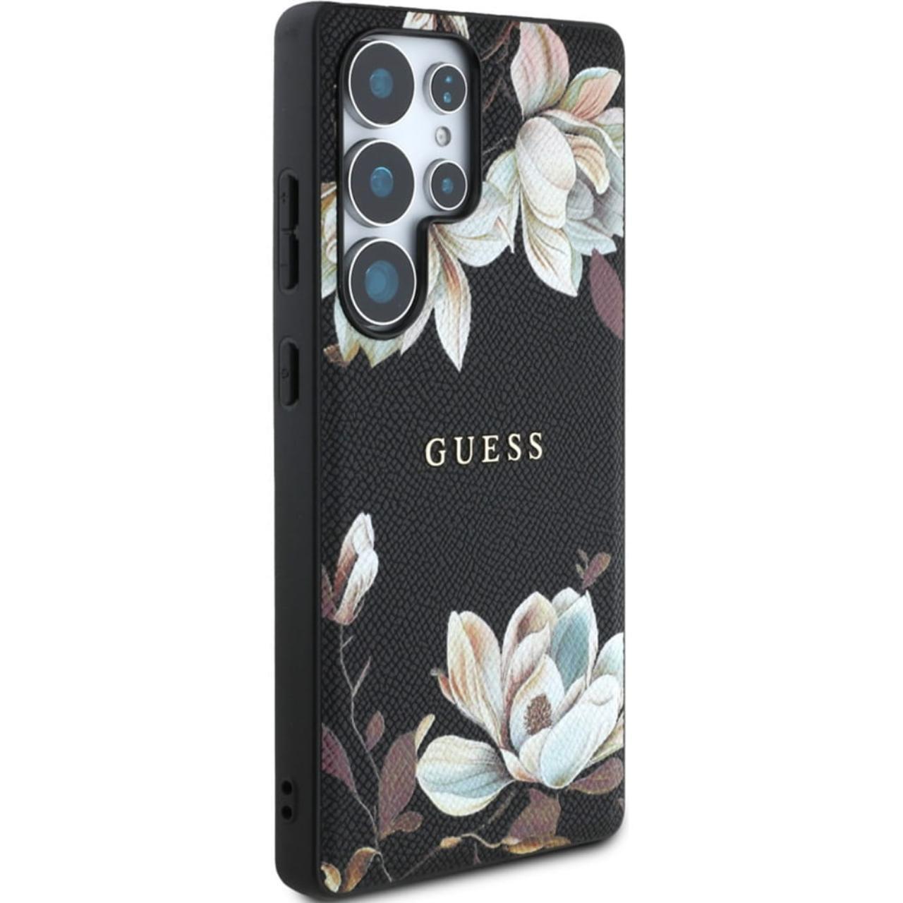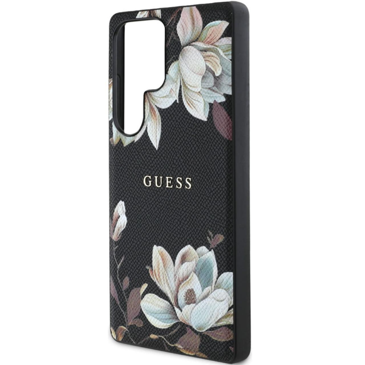 Guess Husa Grained Printed Flower Pattern MagSafe Samsung Galaxy S25 Ultra Negru