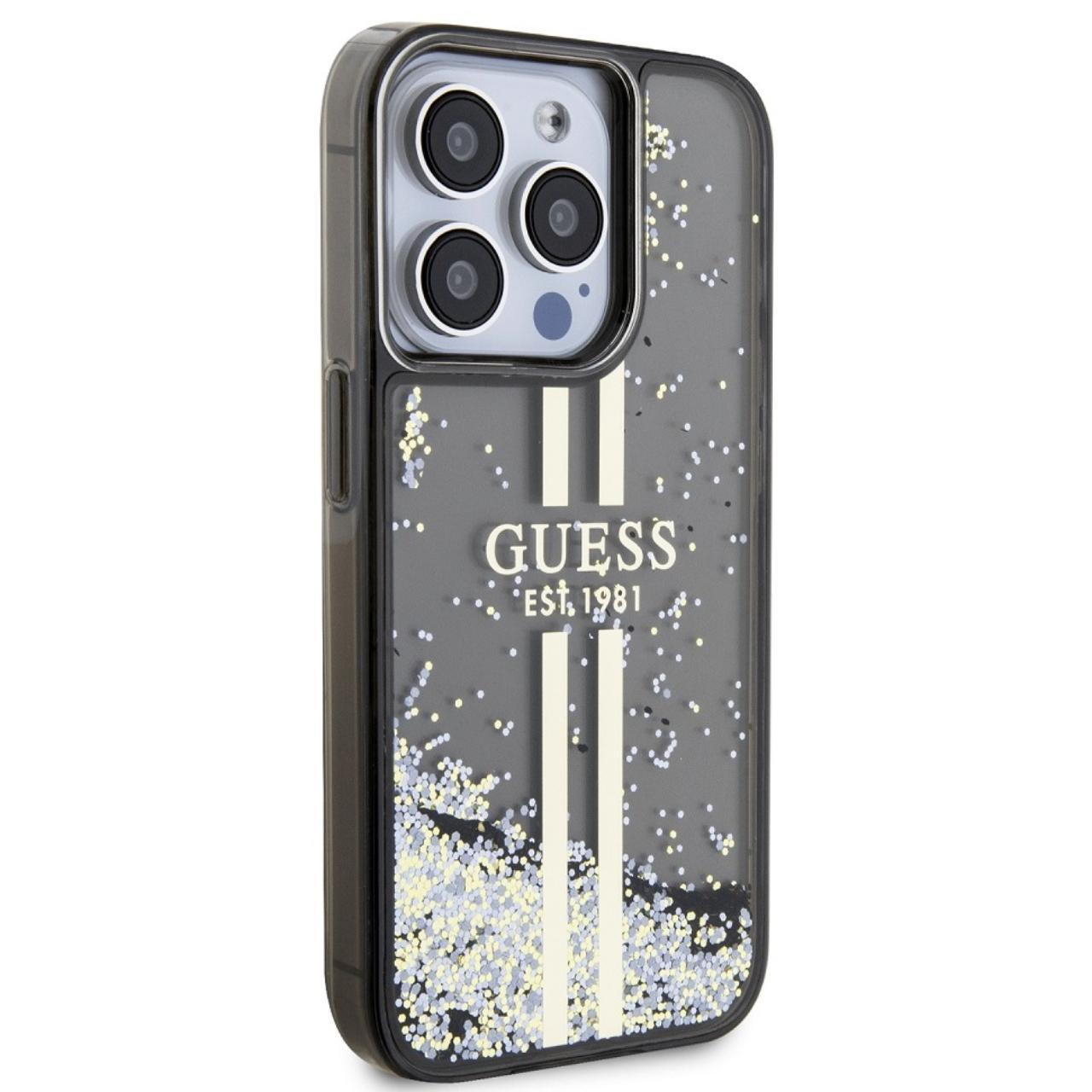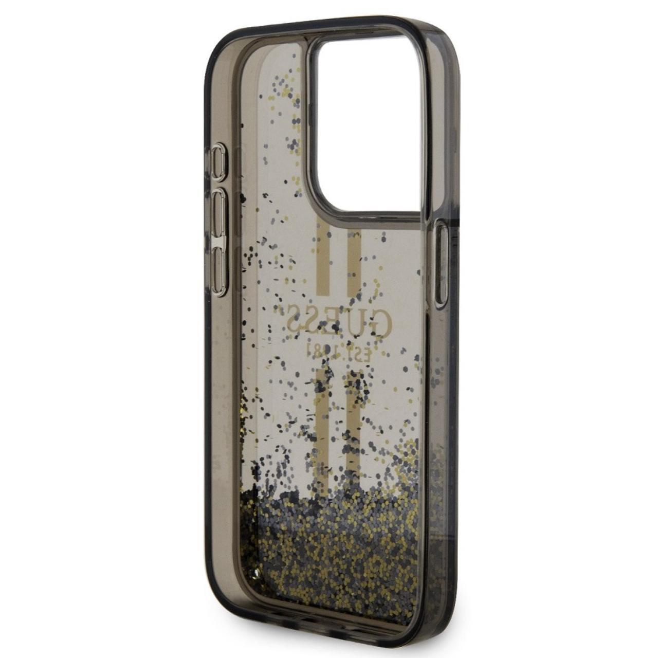 Guess Husa Liquid Glitter Gold Stripe iPhone 15 Pro Negru