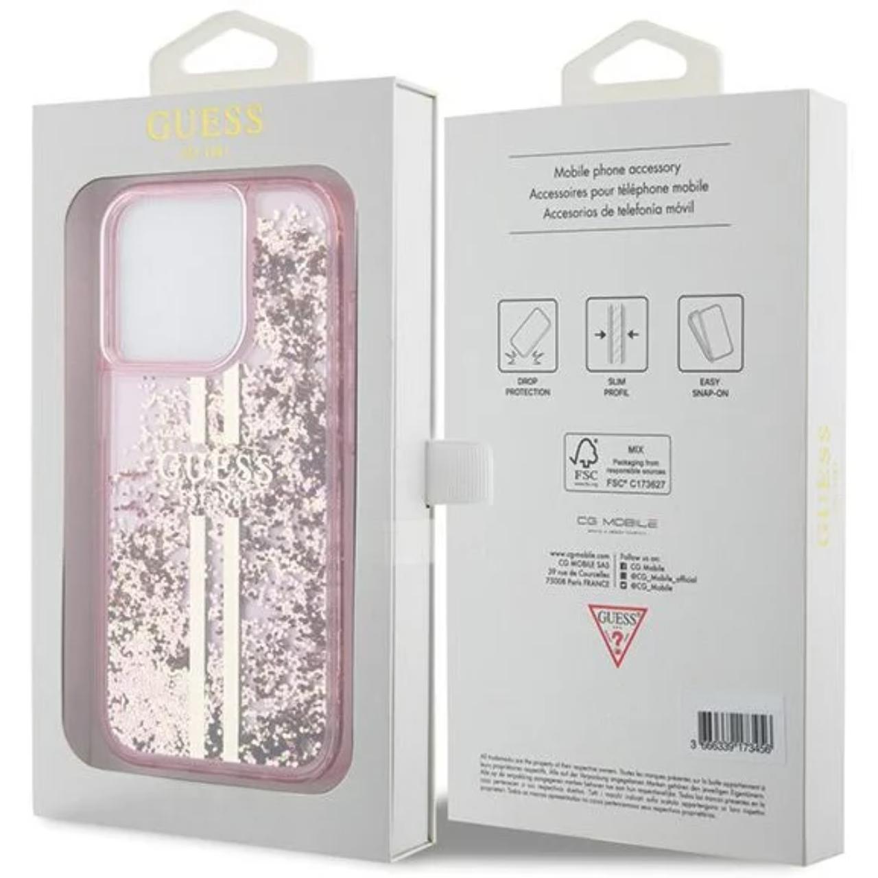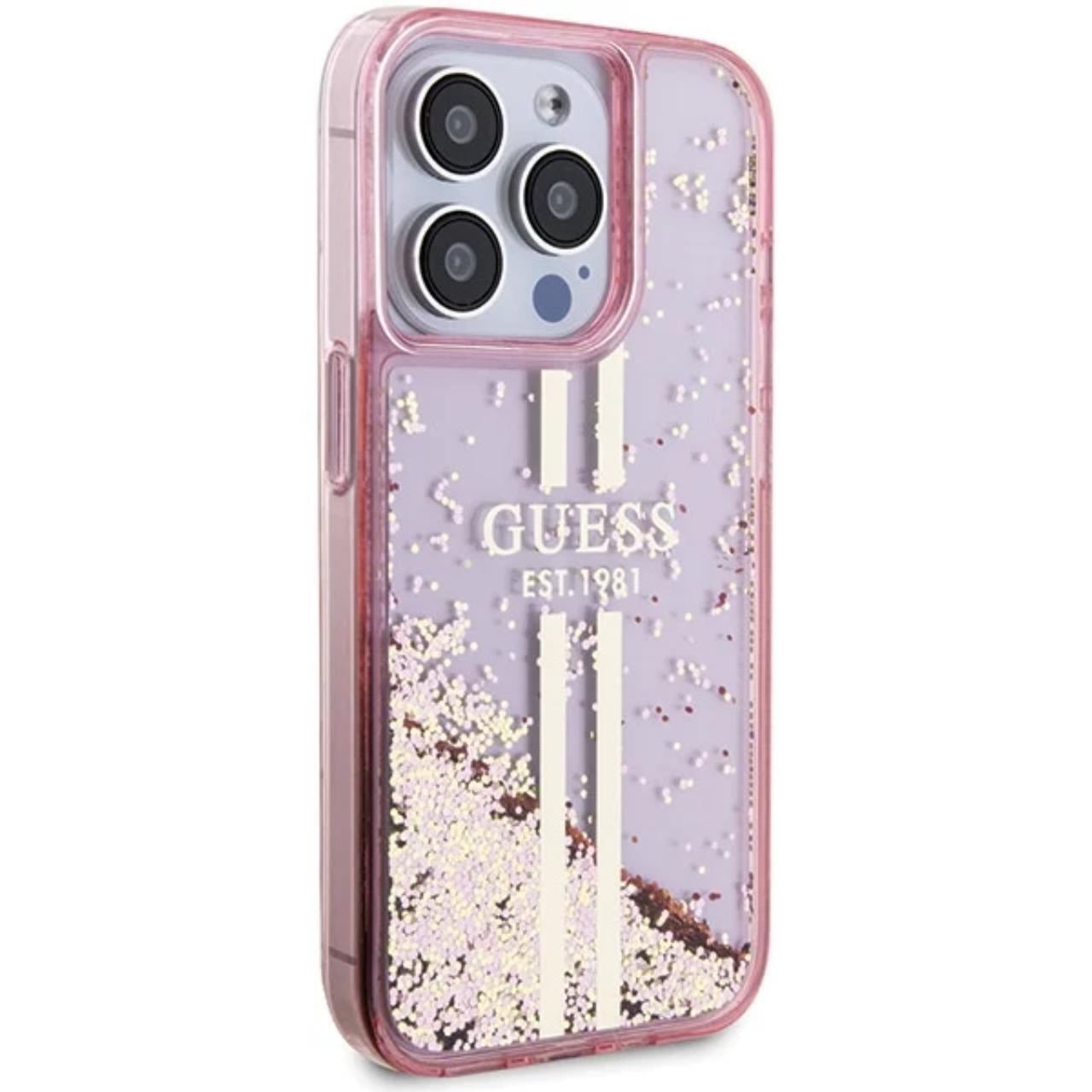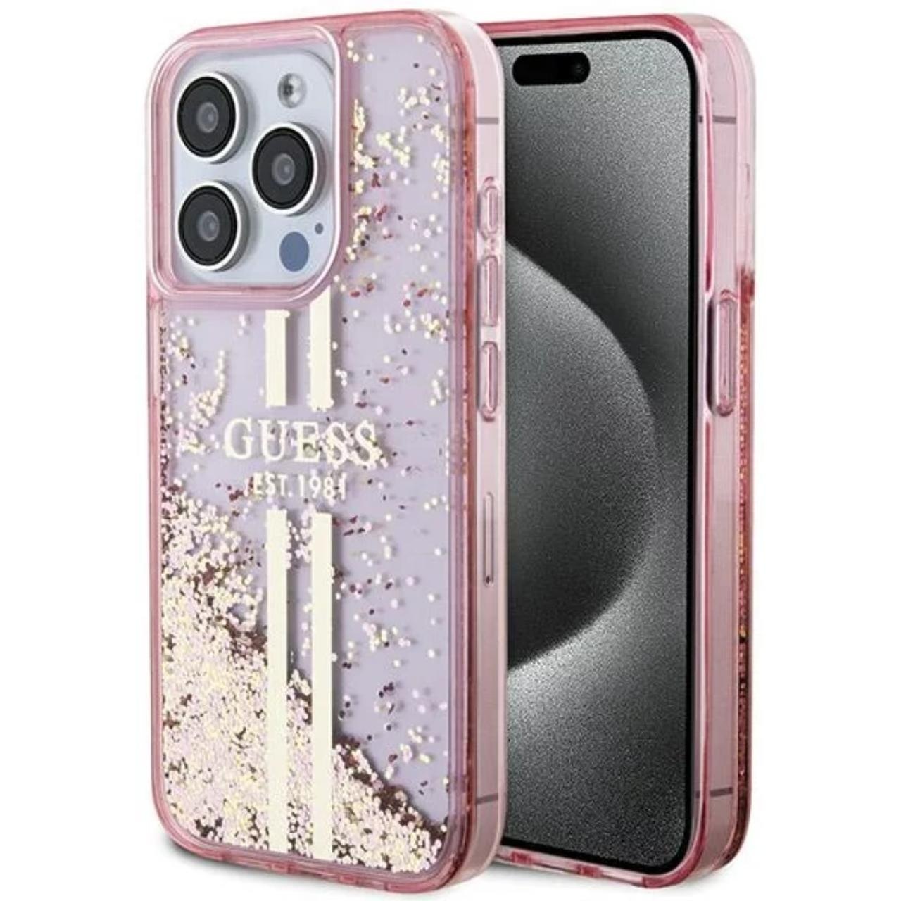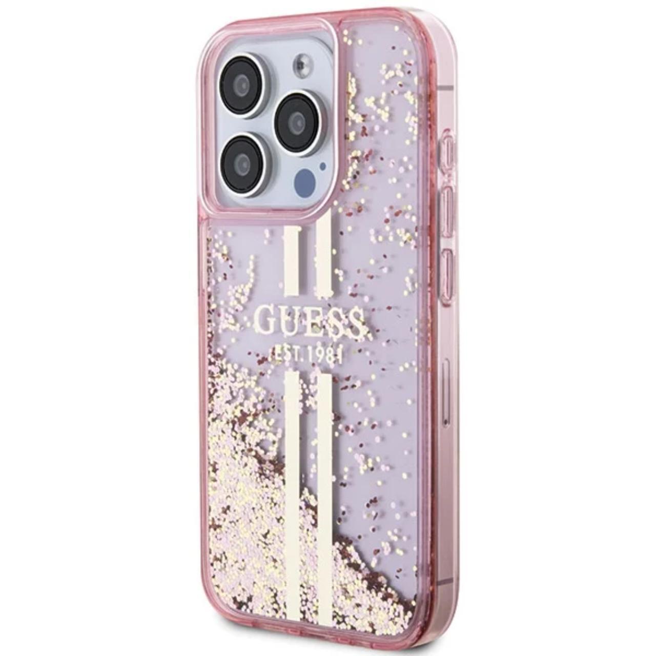Guess Husa Liquid Glitter Gold Stripe iPhone 15 Pro Roz