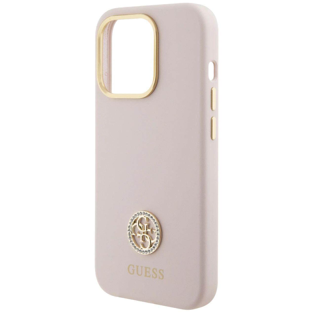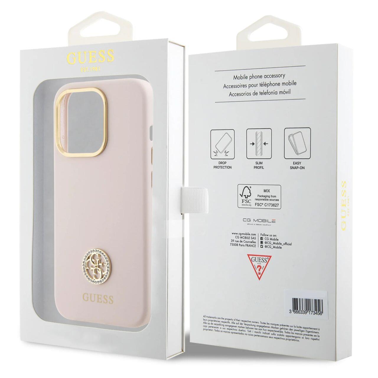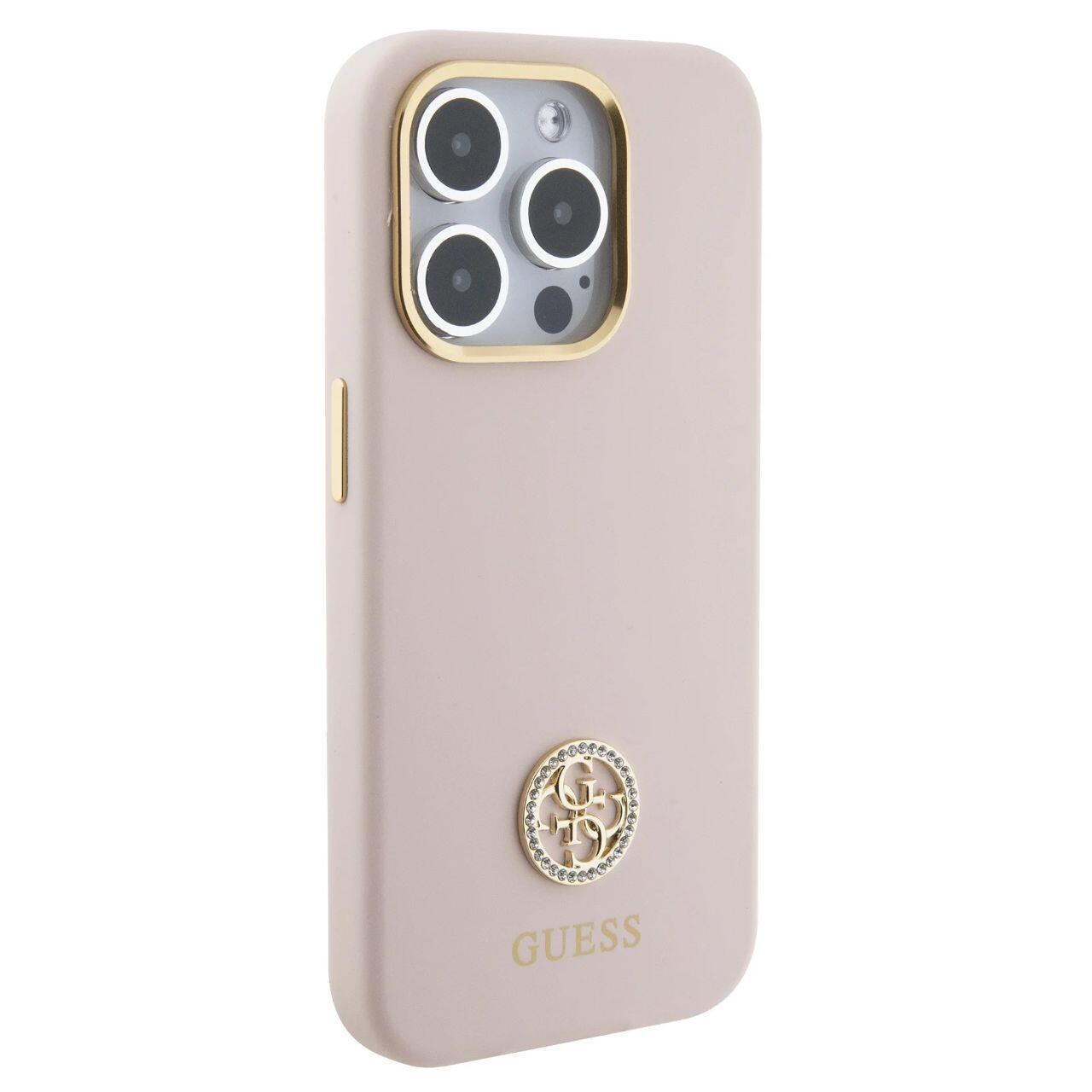 Guess Husa Liquid Silicone 4G Strass Metal Logo iPhone 15 Pro Roz