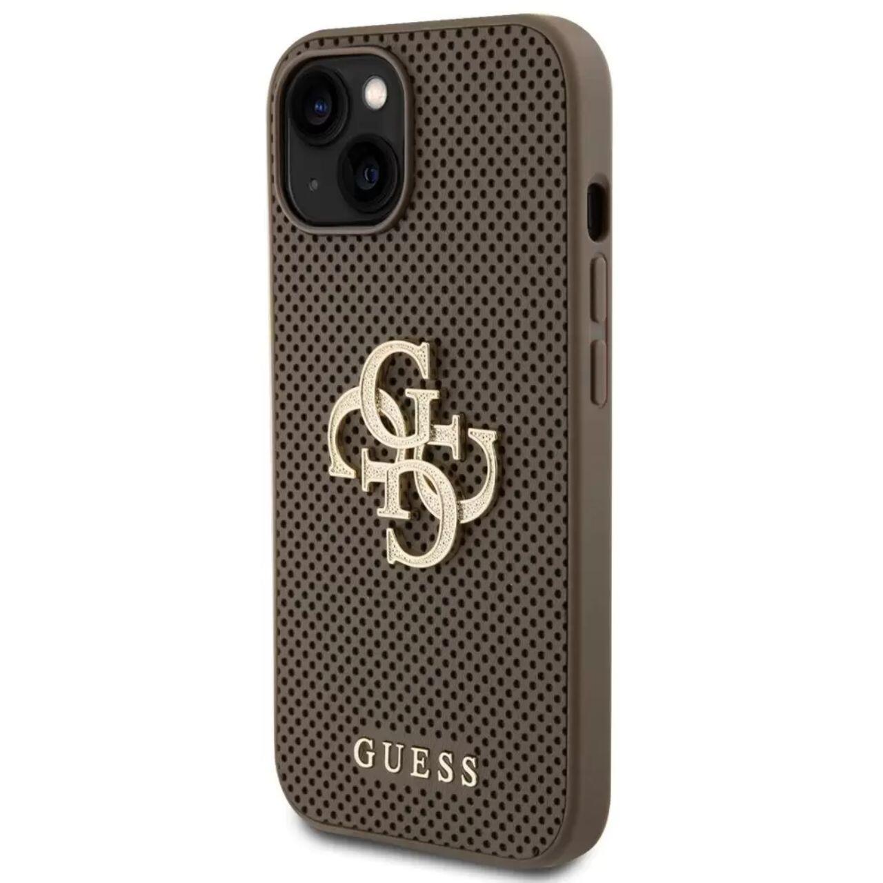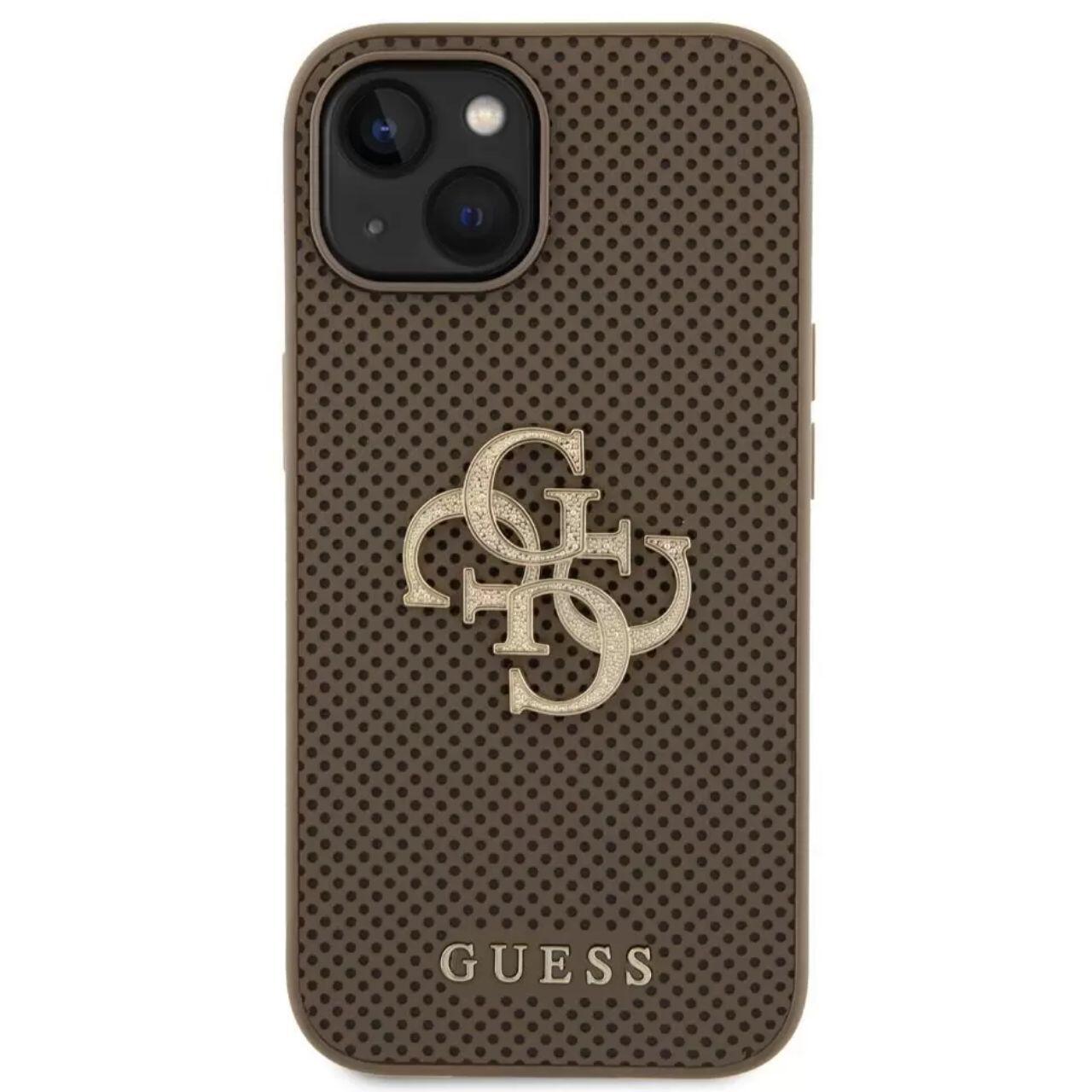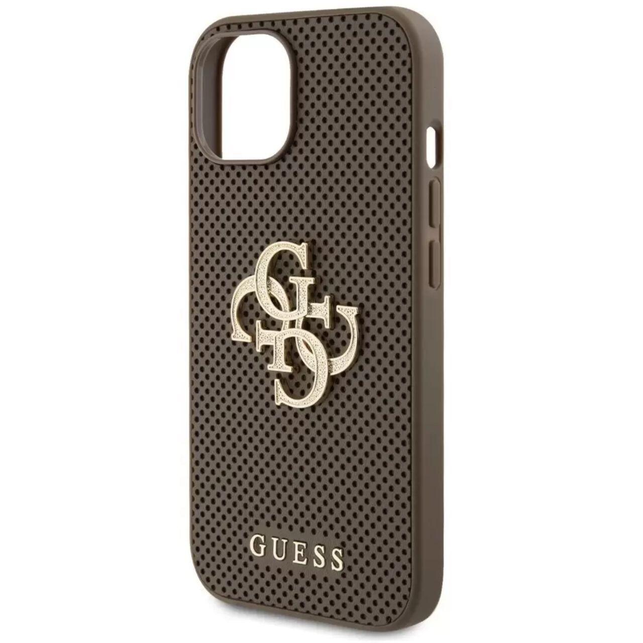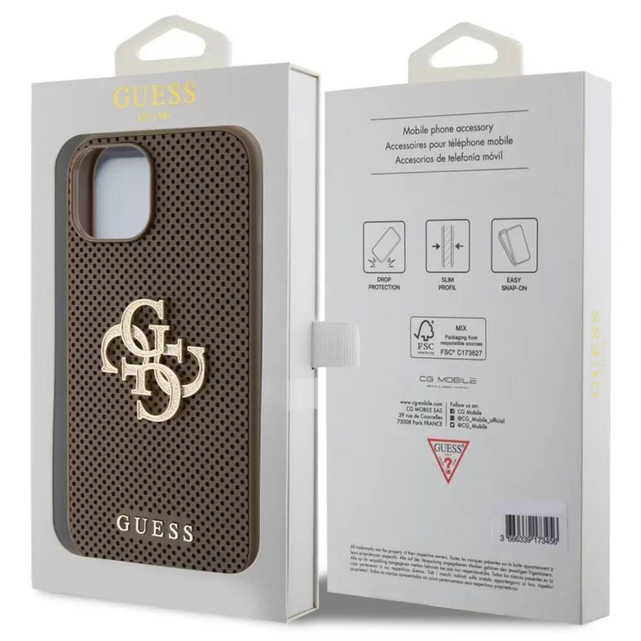 Guess Husa Perforated 4G Glitter Metal Logo iPhone 15 Taupe