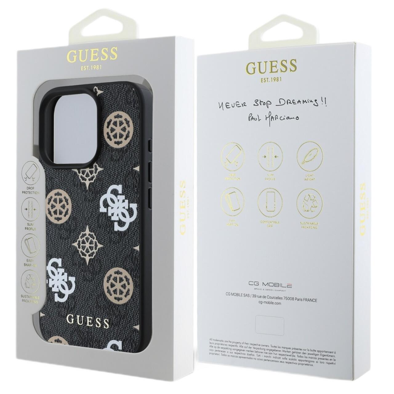 Guess Husa PU 4G Peony MagSafe iPhone 16 Pro Negru