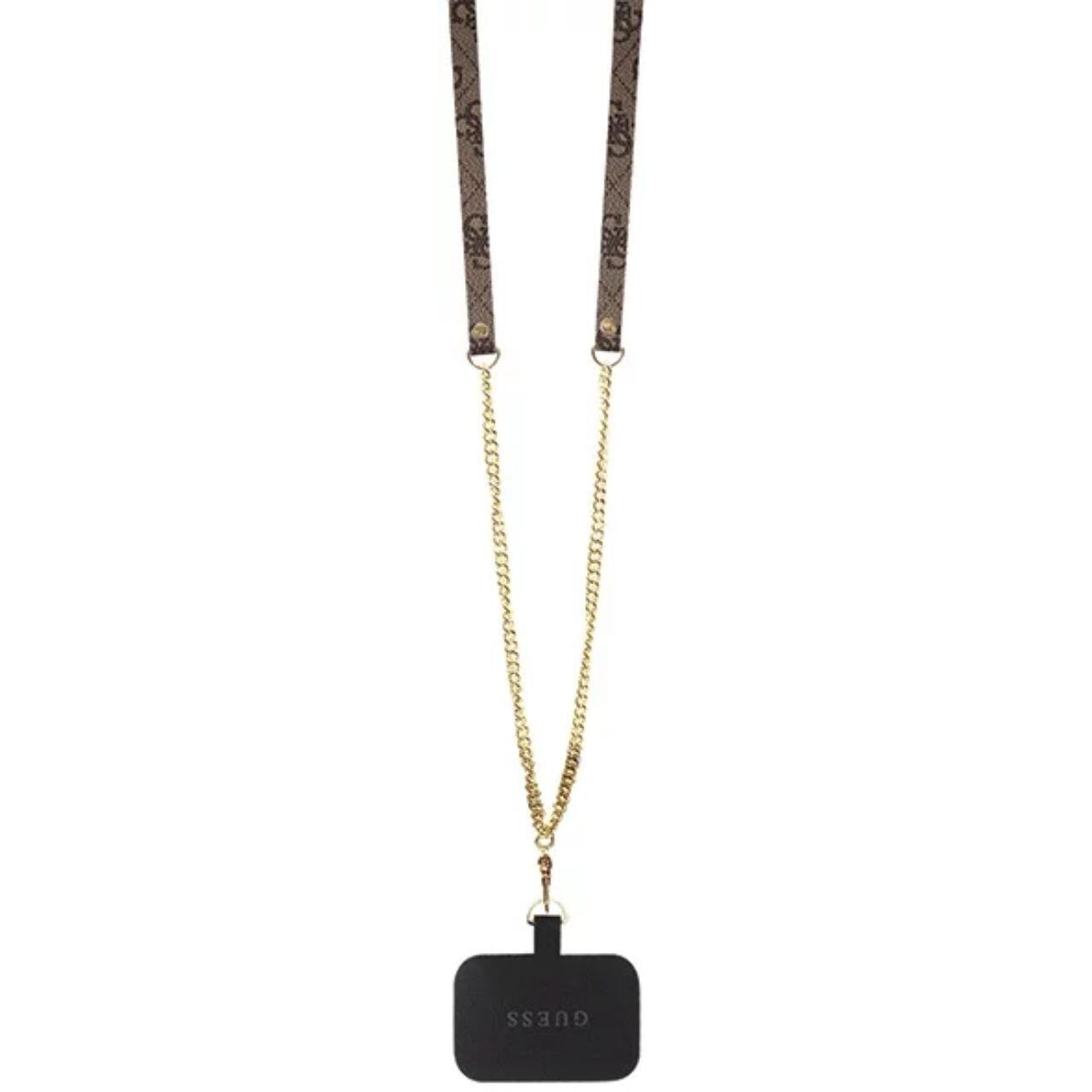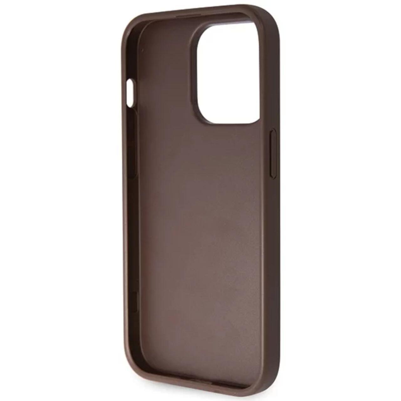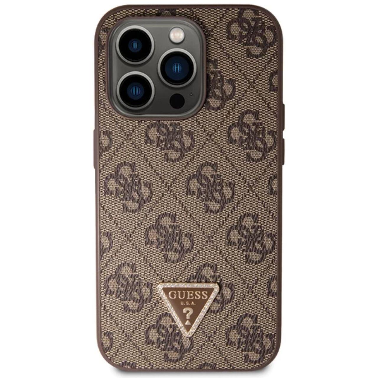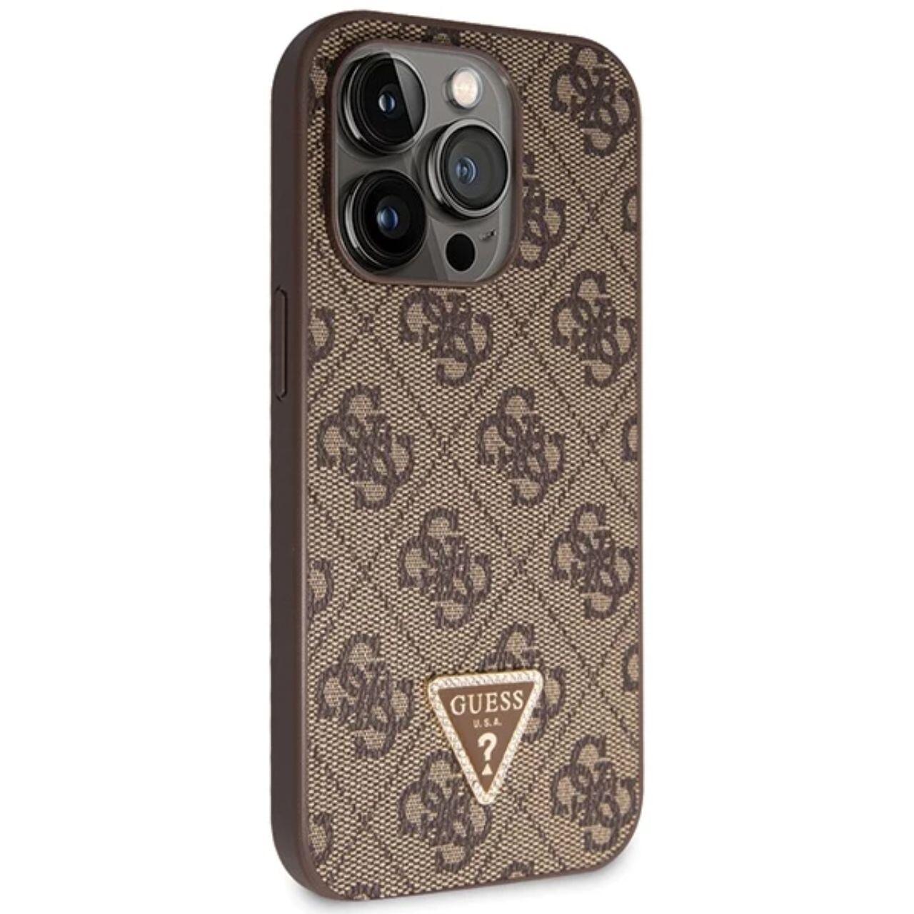 Guess Husa PU 4G Strass Triangle Metal Logo cu curea Crossbody iPhone 15 Pro Maro
