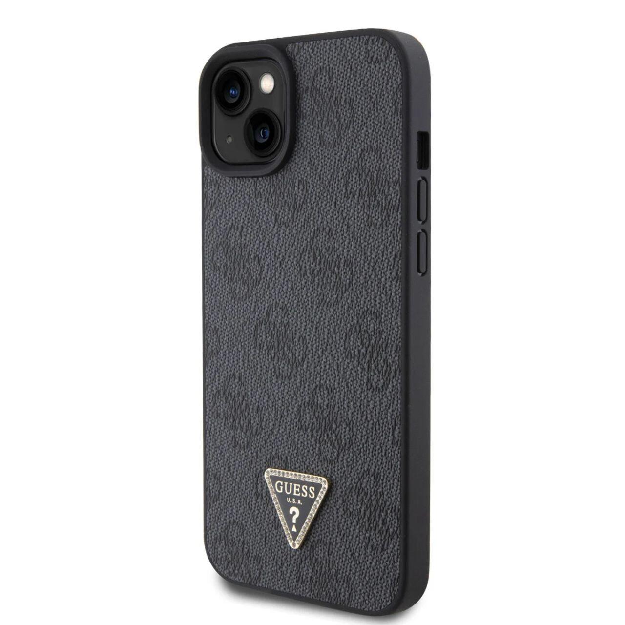 Guess Husa PU 4G Strass Triangle Metal Logo iPhone 15 Negru