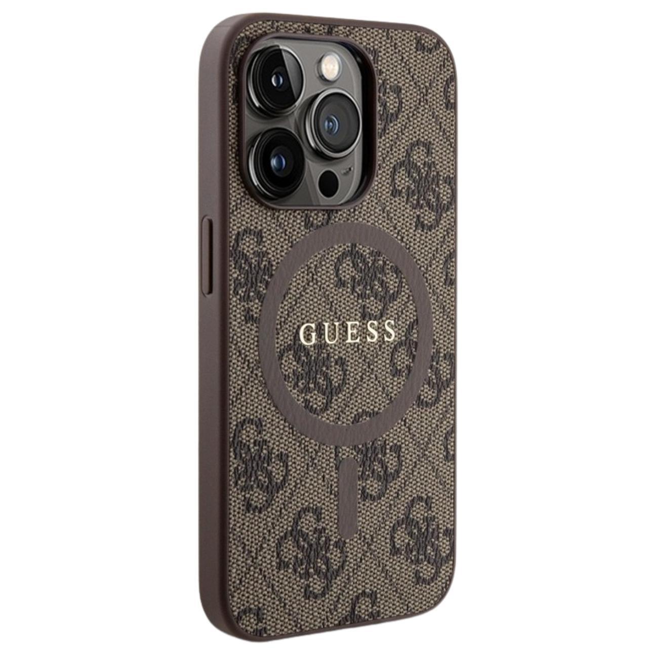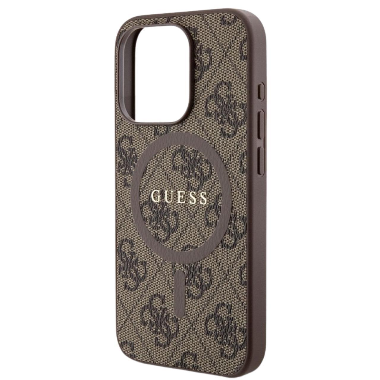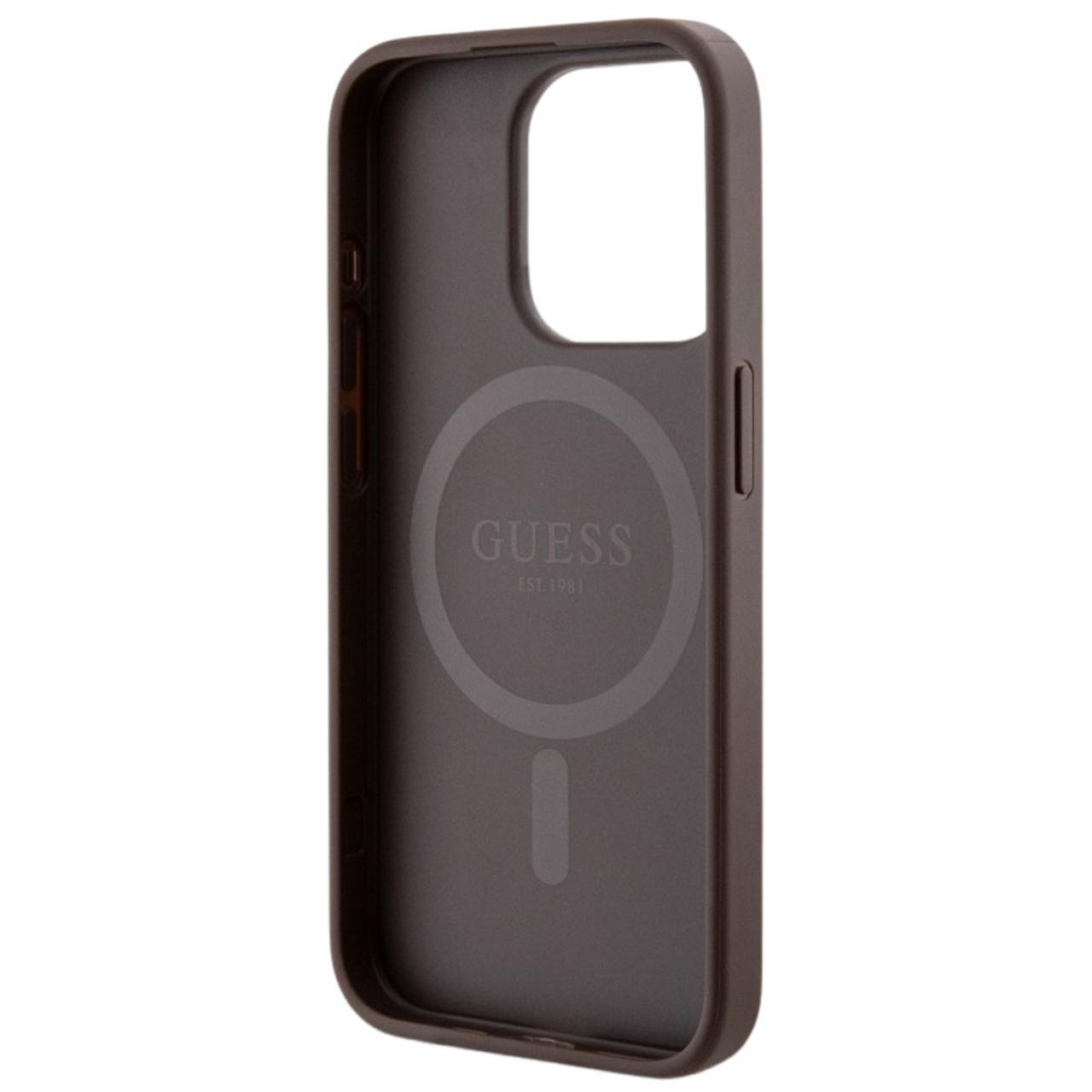 Guess Husa PU Leather 4G Colored Ring MagSafe iPhone 15 Pro Max Maro