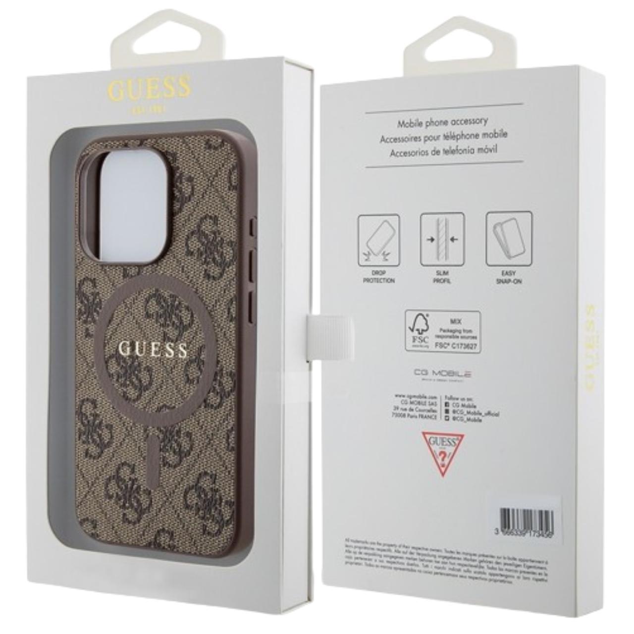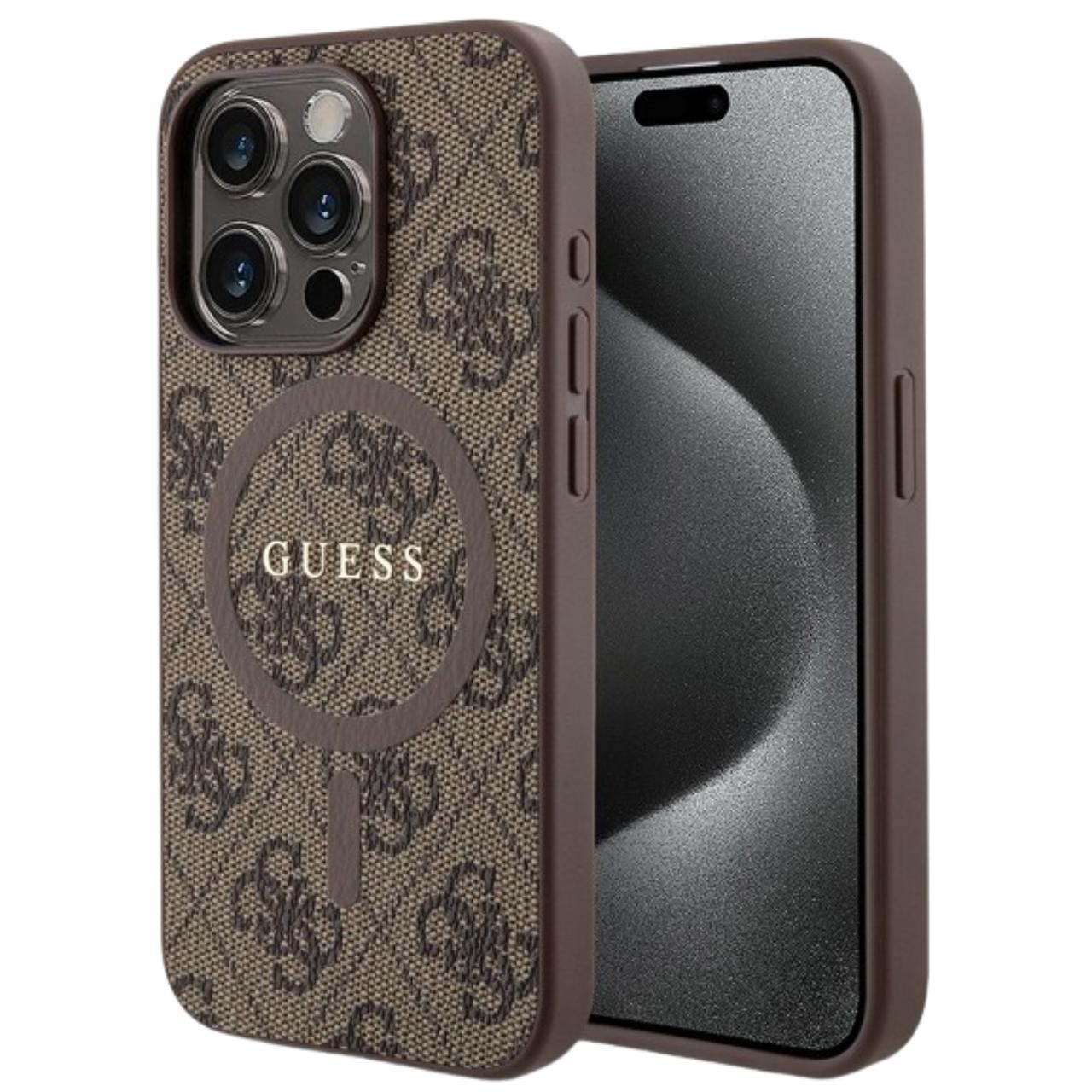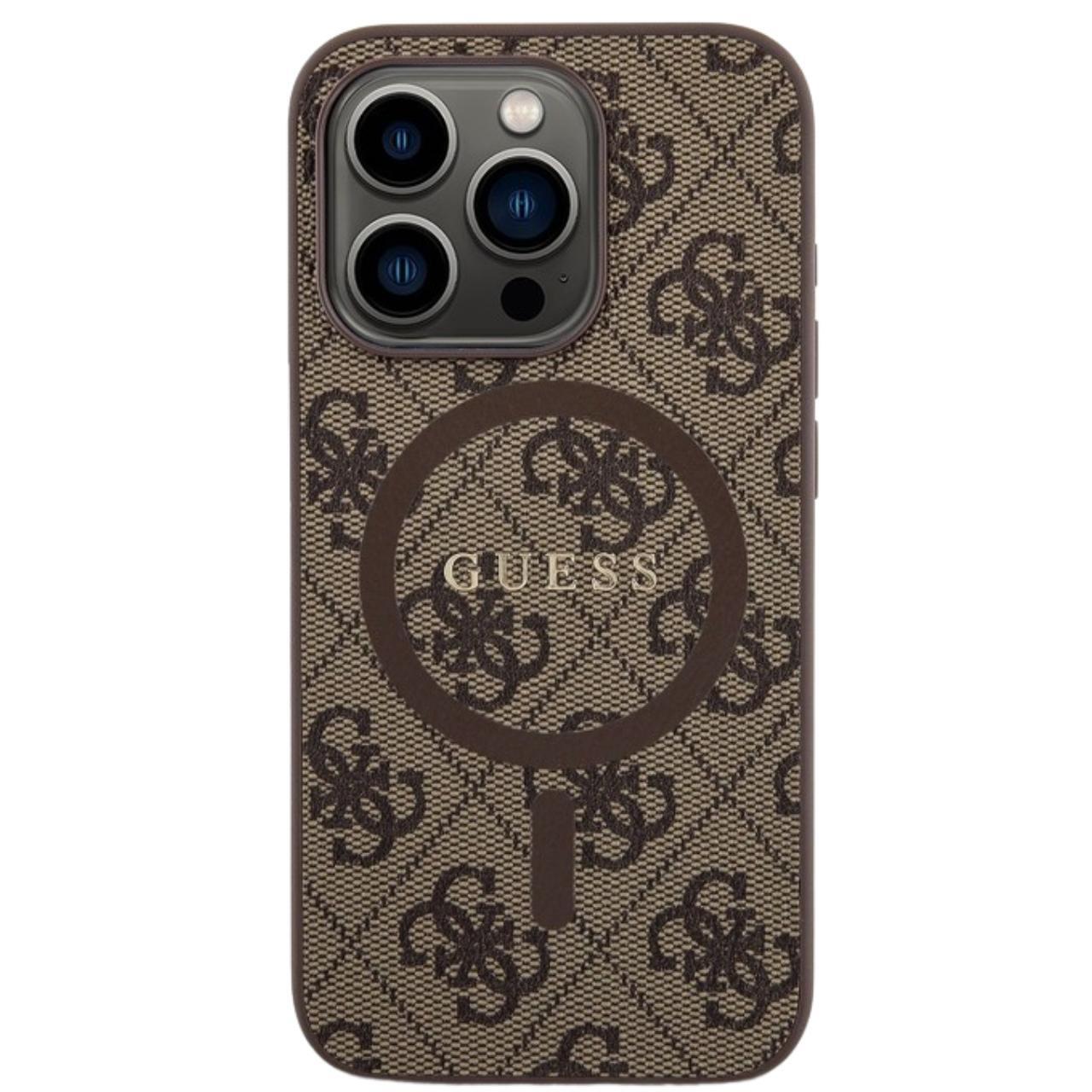 Guess Husa PU Leather 4G Colored Ring MagSafe iPhone 15 Pro Max Maro