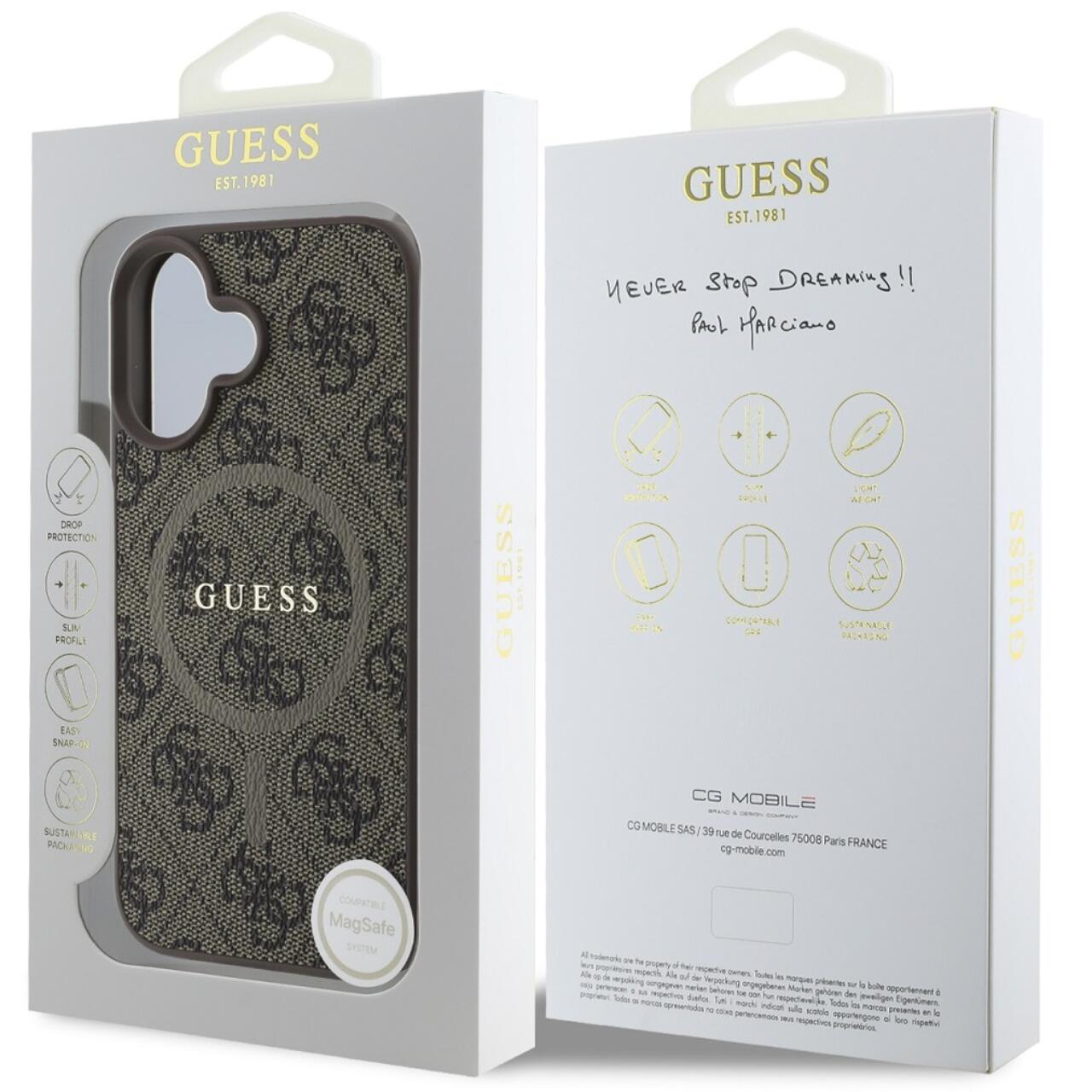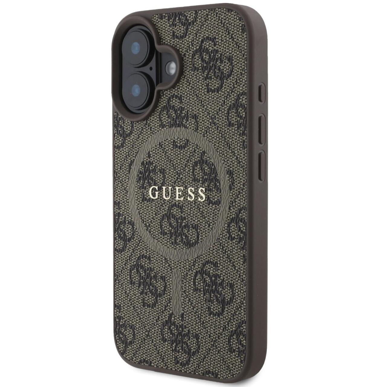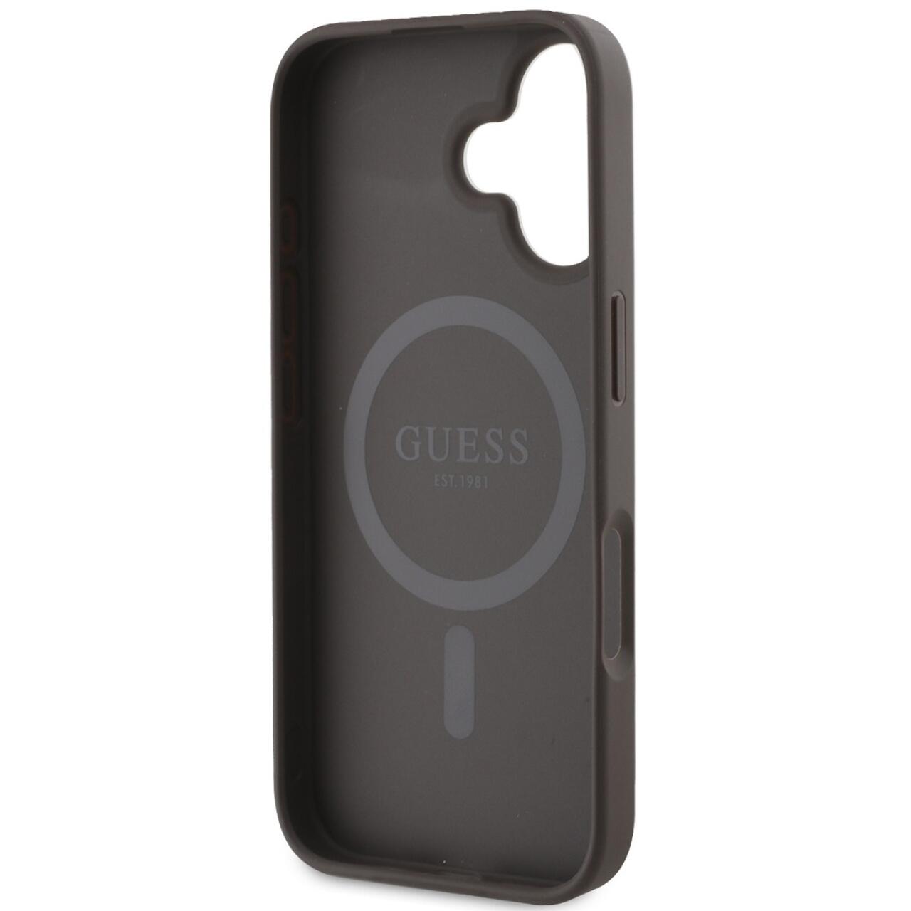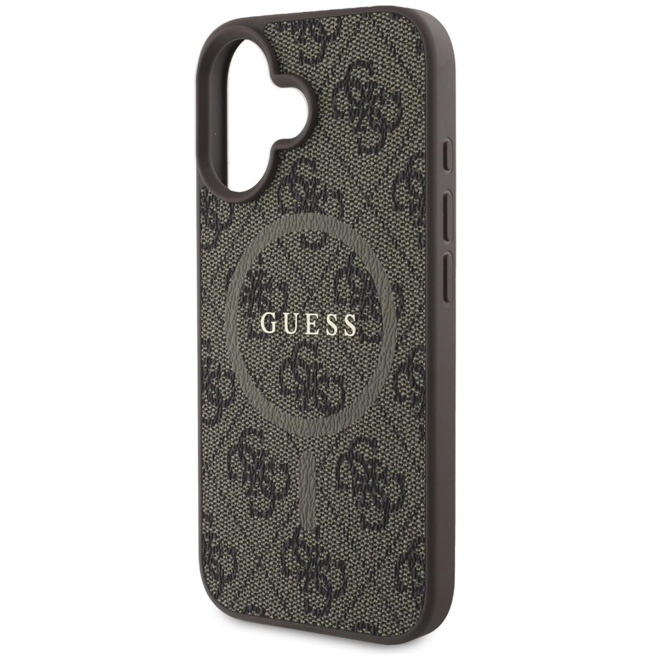 Guess Husa PU Leather 4G Colored Ring MagSafe iPhone 16 Plus Maro