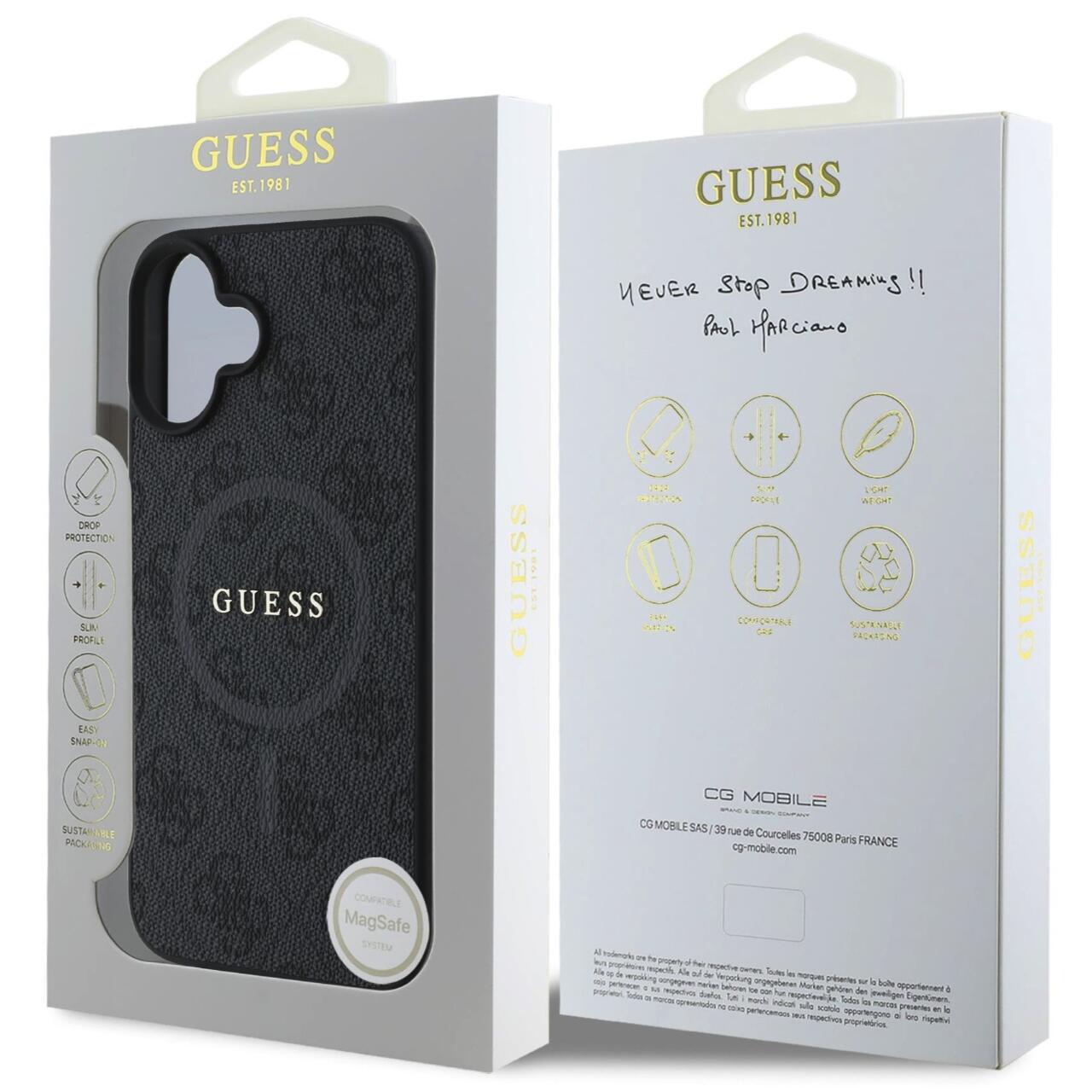 Guess Husa PU Leather 4G Colored Ring MagSafe iPhone 16 Plus Negru
