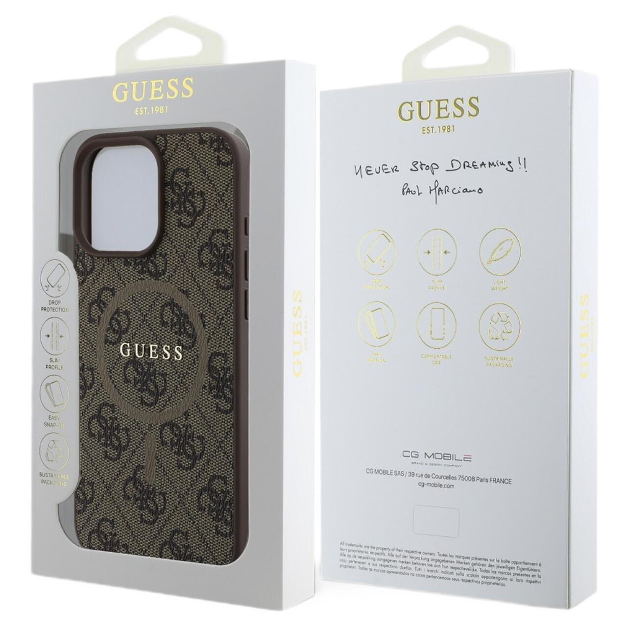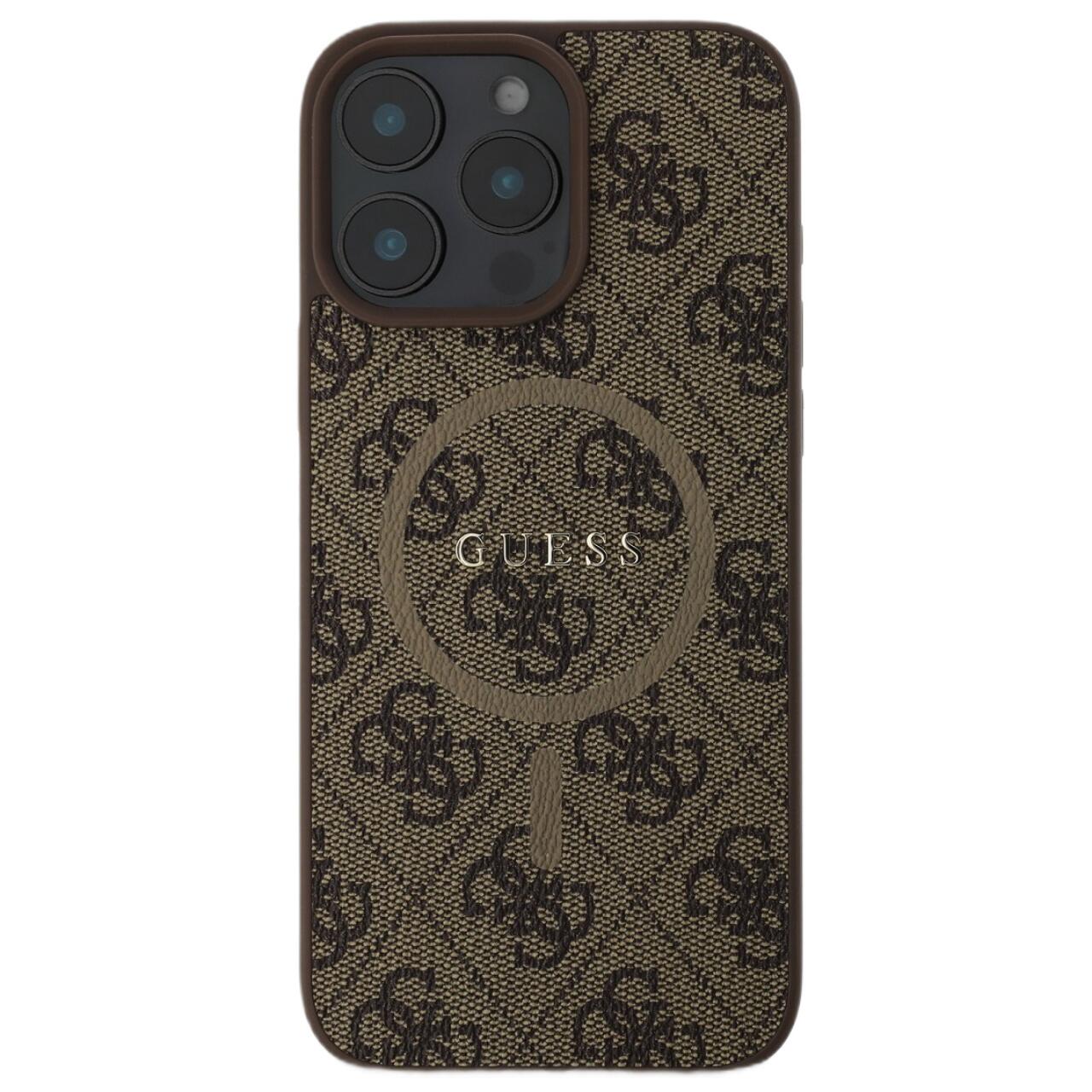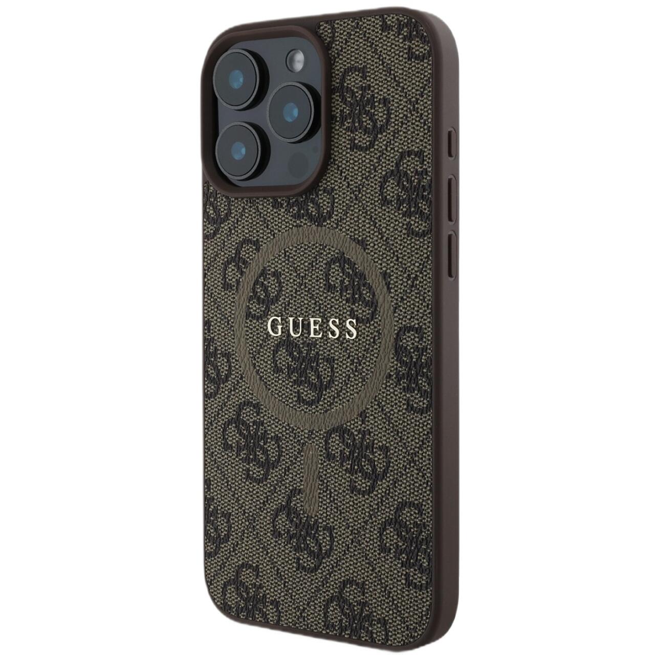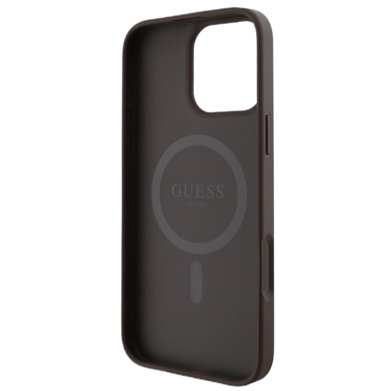 Guess Husa PU Leather 4G Colored Ring MagSafe iPhone 16 Pro Maro