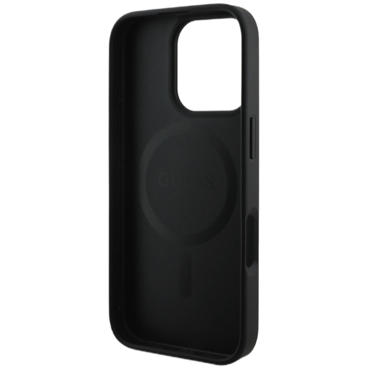 Guess Husa PU Leather 4G Colored Ring MagSafe iPhone 16 Pro Max Negru