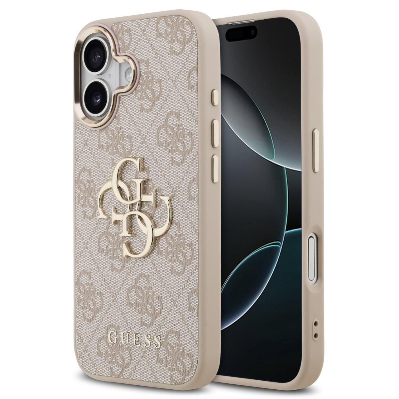 Guess Husa PU Leather 4G Metal Logo Gold Frame iPhone 17 Roz