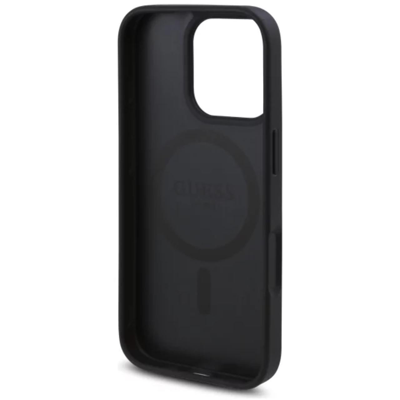 Guess Husa PU Leather 4G Roses MagSafe iPhone 16 Pro Negru