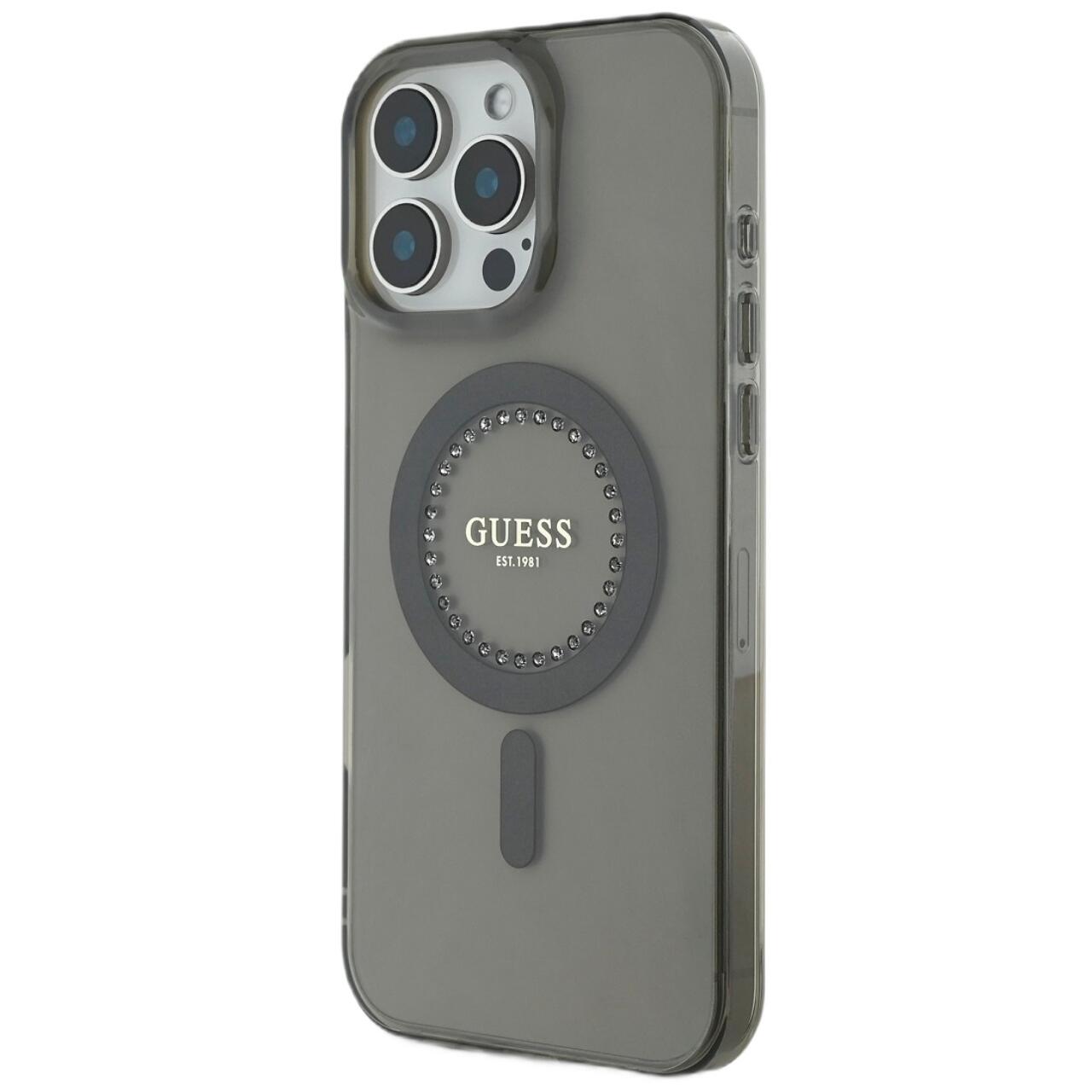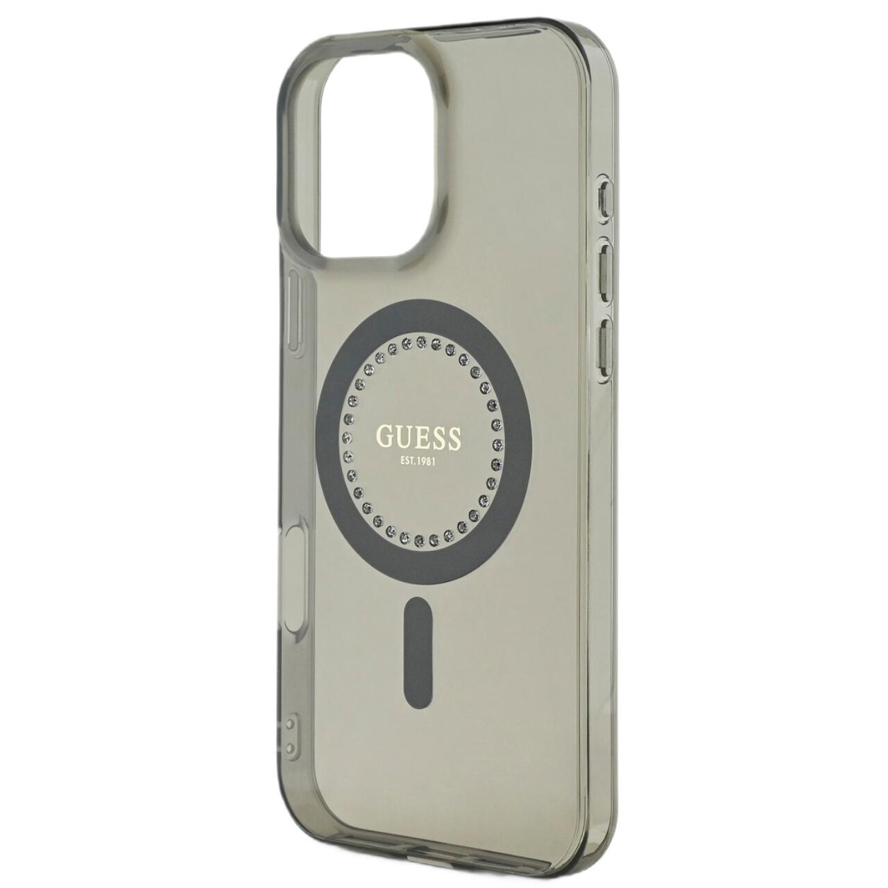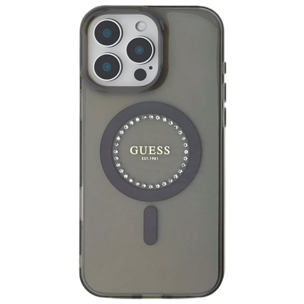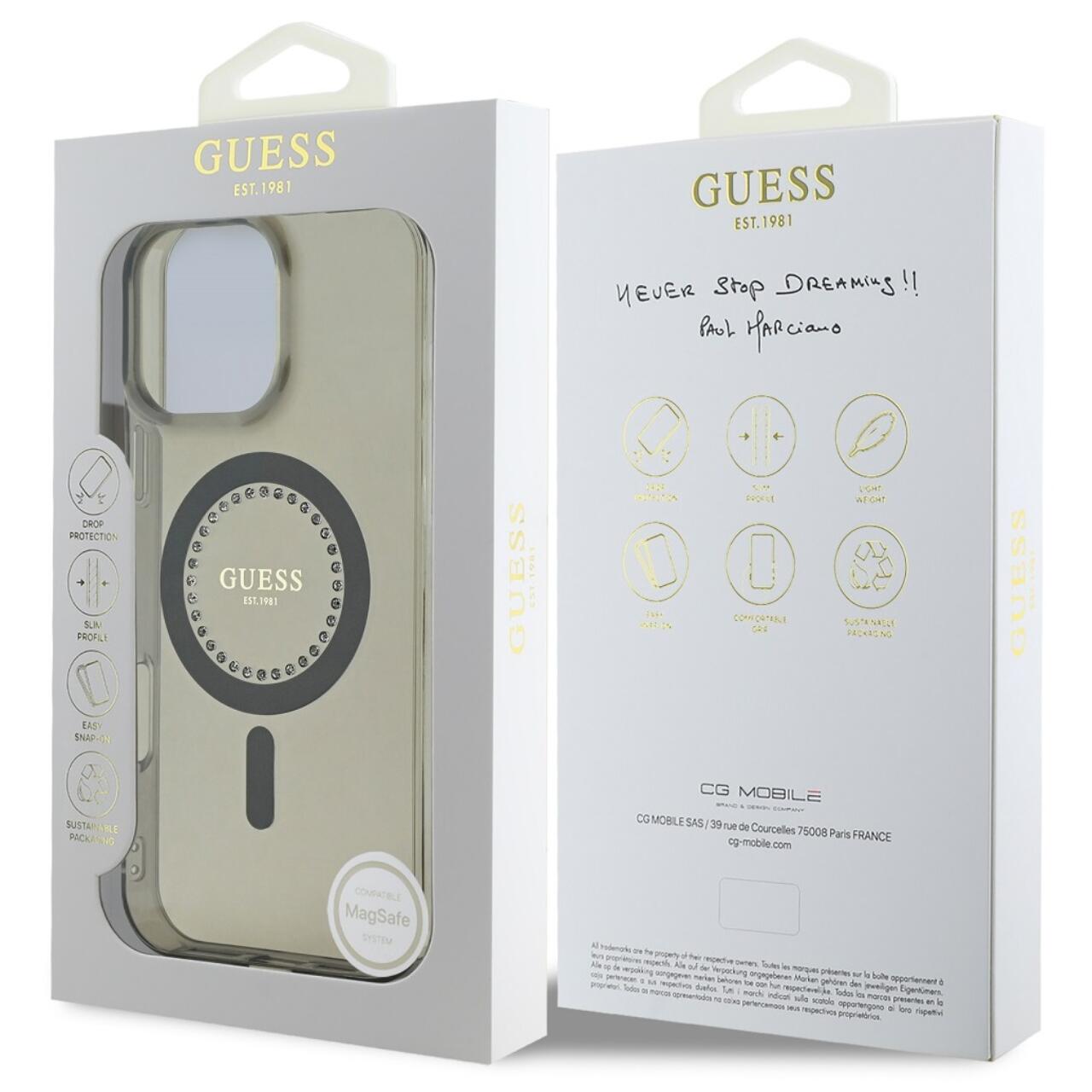 Guess Husa Rhinestones Ring MagSafe iPhone 16 Pro Max Negru
